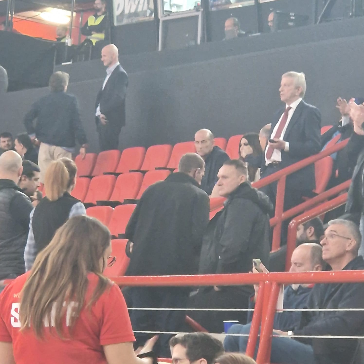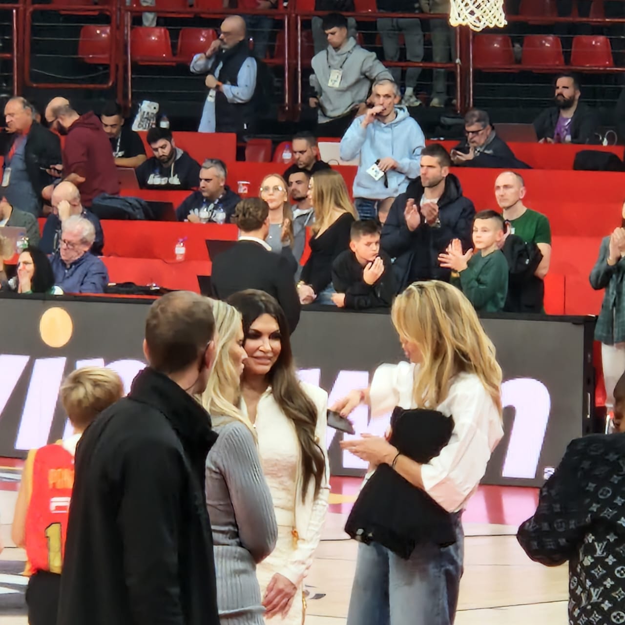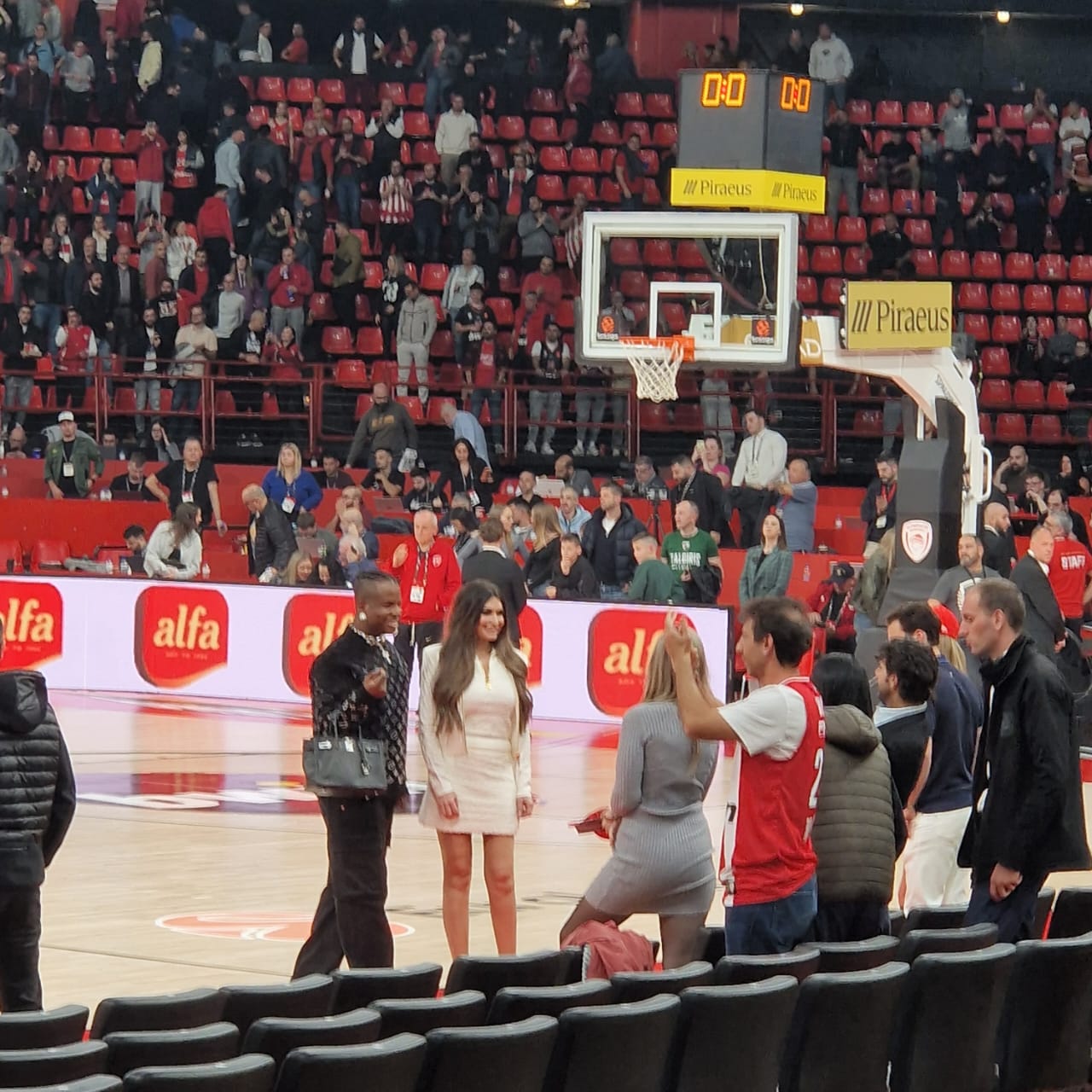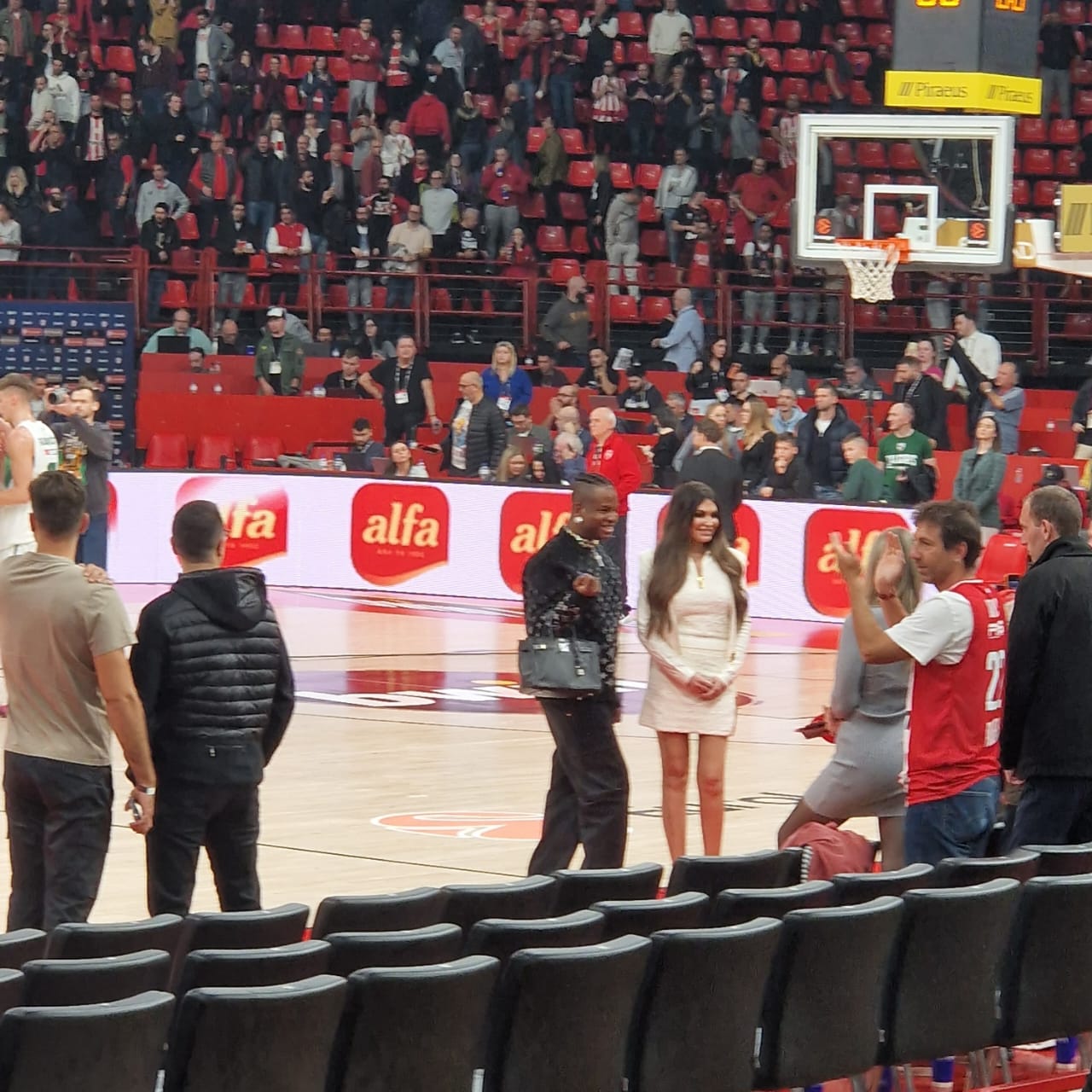 Την είδα να ρωτάει με ενδιαφέρον τα πάντα και να παρακολουθεί τον αγώνα με αγωνία. Αλλά και ενθουσιασμένη με την εξέδρα των φιλάθλων που ήταν ιδιαίτερα εκδηλωτική. Στην παρέα και ο εφοπλιστής Νίκος Τσάκος, που έχει και τα νερά Arrena, βασικό χορηγό του μπάσκετ του Ολυμπιακού.