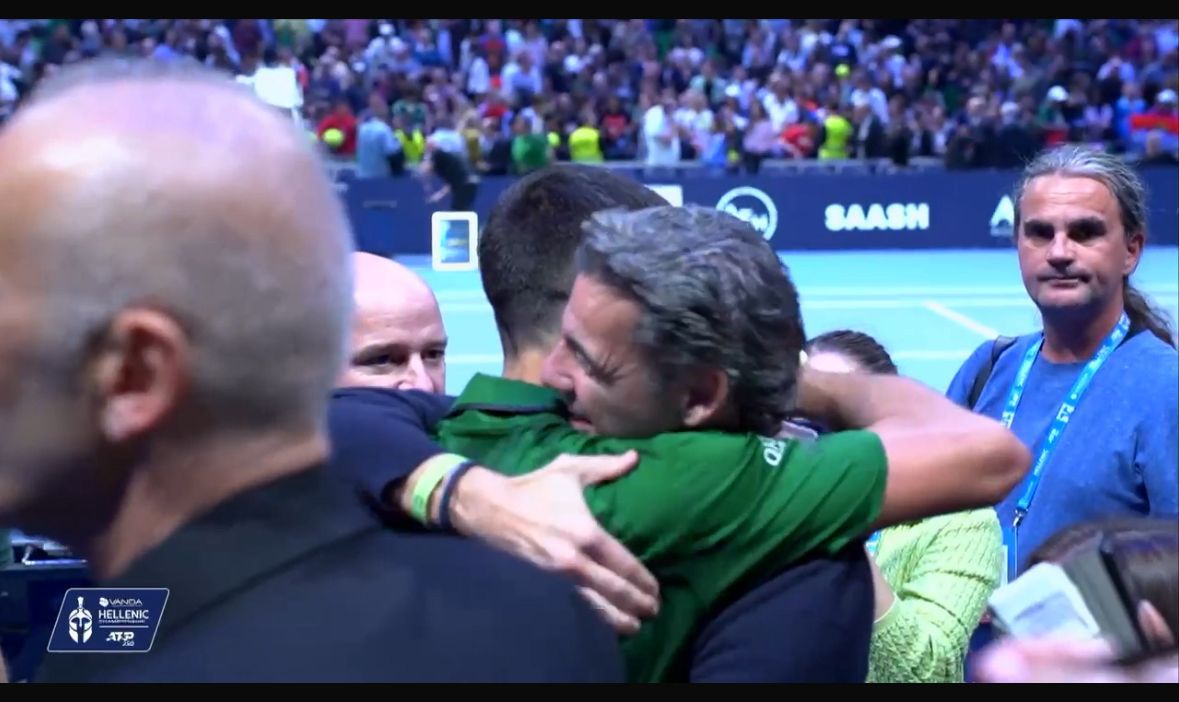Ο Σέρβος superstar του τένις σταμάτησε να υπογράφει αυτόγραφα και έσπευσε να αγκαλιάσει τον Έλληνα επικεφαλής της BC Partners και φίλο του (φωτό).