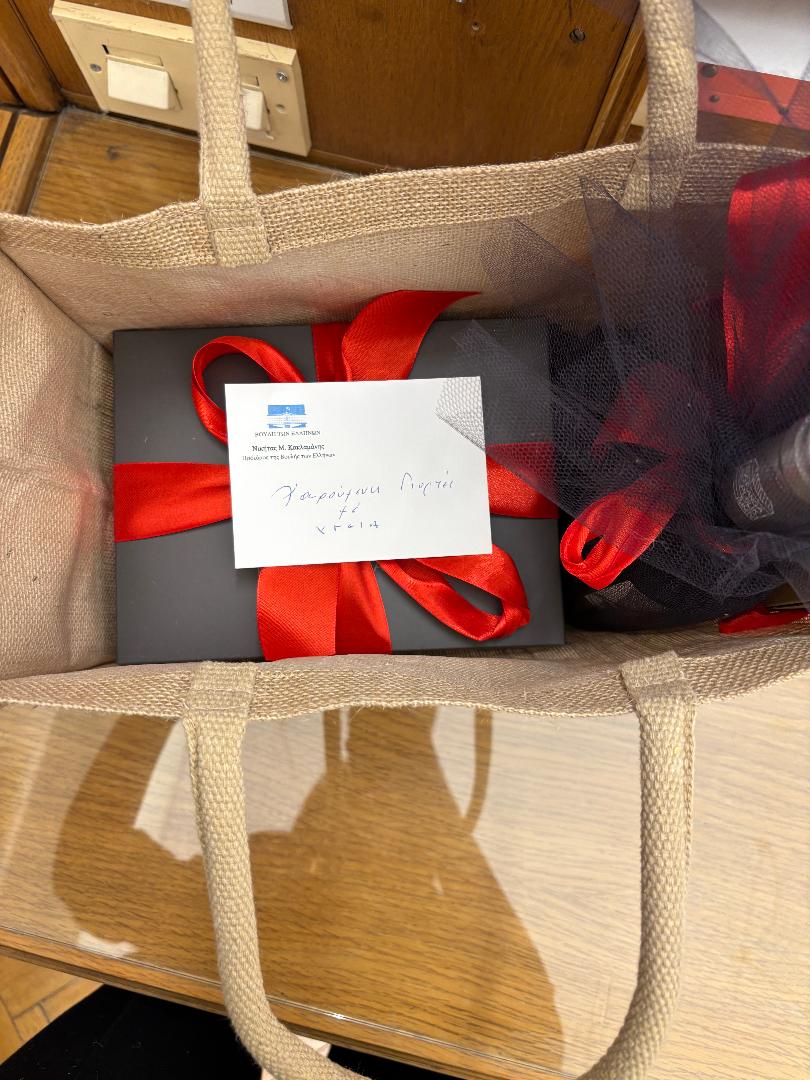 Ένα μπουκάλι κρασί, ένα αρωματικό κερί, έναν wireless φορτιστή και πολλές θερμές ευχές για καλά Χριστούγεννα πρόσφερε φέτος στους κοινοβουλευτικούς συντάκτες ο Πρόεδρος της Βουλής, Νικήτας Κακλαμάνης.