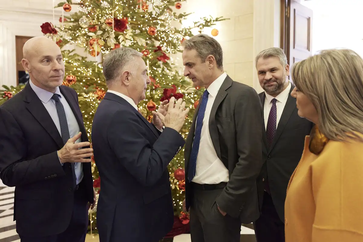 Για δεύτερη συνεχόμενη χρονιά, ο Πρωθυπουργός υποδέχθηκε τα 155 μέλη της Κοινοβουλευτικής Ομάδας στο Μέγαρο Μαξίμου, με στόχο την ενίσχυση των εσωκομματικών δεσμών. Το κλίμα ήταν γιορτινό, με ανταλλαγή ευχών, selfies και την καθιερωμένη οικογενειακή φωτογραφία μπροστά από το Χριστουγεννιάτικο δέντρο. Οι συζητήσεις μεταξύ των βουλευτών και του πρωθυπουργού ήταν χαλαρές, χωρίς αναφορά σε πρόσφατες κριτικές για κυβερνητικούς χειρισμούς, όπως στο αγροτικό ζήτημα, καθώς όλοι αναμένουν τη συνεδρίαση του Συντονιστικού οργάνου.