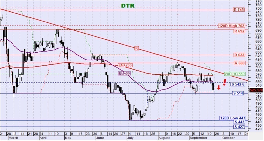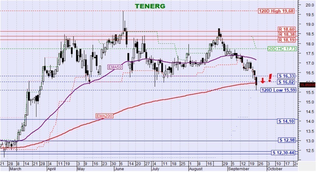 Μετά την απώλεια των στηρίξεων του ΕΜΑ200 και ΕΜΑ50 και αυτή στα 4,98€ για δεύτερη φορά η μετοχή δεν αντέδρασε ξανά ανοδικά αλλά κατέρρευσε χάνοντας και τη στήριξη στο επίπεδο των 4,68€ ενώ πλέον αναζητεί στήριξη στα 4,60€ ως τελευταία ευκαιρία να αποφύγει την πιθανότητα επίτευξης νέου χαμηλού 120 ημερών.