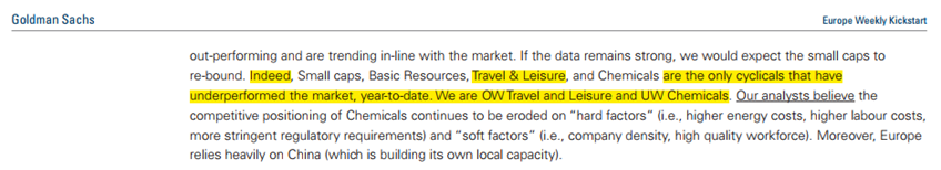 Ο The Value Investor πιστεύει ότι πολύ μεγάλος θετικός καταλύτης για την Aegean από εδώ και πέρα είναι το report που έβγαλε η Goldman Sachs την Παρασκευή 10 Μαΐου για τις ευρωπαϊκές μετοχές λέγοντας ότι βγαίνει full overweight στον αεροπορικό κλάδο διότι έχει μείνει πίσω σε σχέση με το ράλι της αγοράς.