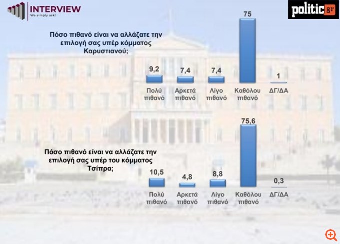 Διστακτικό εμφανίζεται το εκλογικό σώμα απέναντι σε πιθανά πολιτικά εγχειρήματα Τσίπρα και Καρυστιανού.
