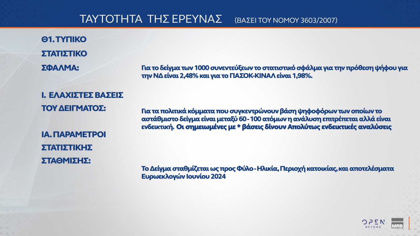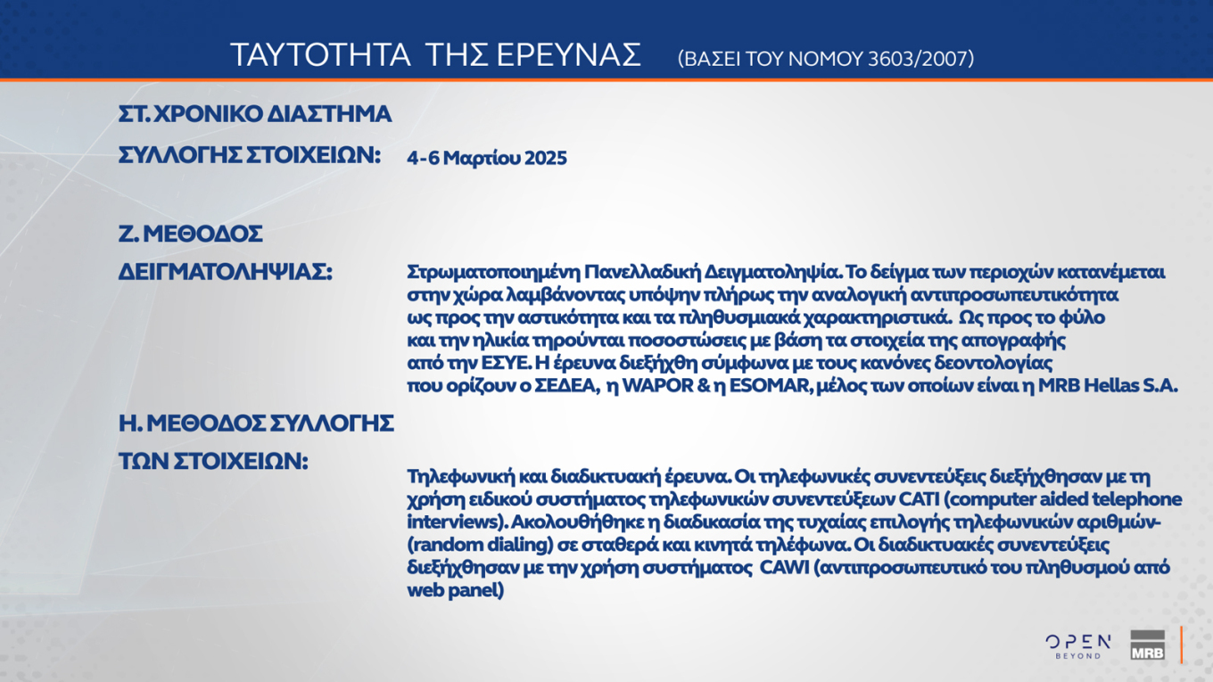 Η Νέα Δημοκρατία διατηρεί το προβάδισμά της έναντι του ΠΑΣΟΚ σε νέα δημοσκόπηση της MRB για την τηλεόραση του OPEN.