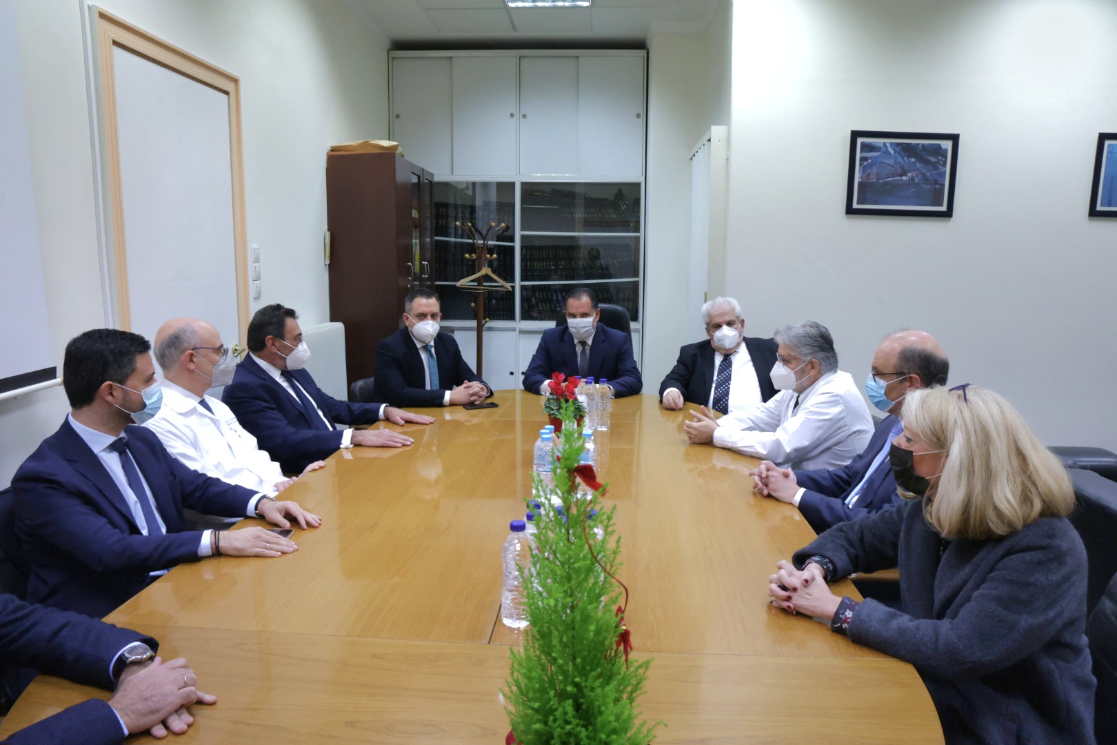 Ακολούθησε συνάντηση στο Γραφείο Διοίκησης, παρουσία των Διευθυντών όλων των Κλινικών και Τμημάτων του Νοσοκομείου. Κατά τη συνάντηση, ο Διοικητής κ. Θεοφάνης Ροΐδης ενημέρωσε τον κ. Γεωργιάδη σχετικά με το πολυδιάστατο επιστημονικό έργο του Νοσοκομείου. Ειδικότερα, επεσήμανε ότι το ΓΝΑ «ΛΑΙΚΟ», σήμερα, είναι τριτοβάθμιο Νοσοκομείο, που προσφέρει υπηρεσίες υγείας στον πληθυσμό του νομού Αττικής, αλλά και σε μεγάλο πληθυσμό όλης της Επικράτειας, λόγω των ιδιαίτερων και εξειδικευμένων δραστηριοτήτων υγειονομικής περίθαλψης που παρέχει.