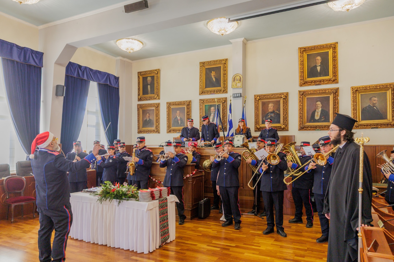 Την εορταστική ατμόσφαιρα πλαισίωσε μουσικά η Φιλαρμονική Ορχήστρα Πνευστών του Δήμου Πειραιά, η οποία παρουσίασε εορταστικό πρόγραμμα, προσδίδοντας ξεχωριστό τόνο στην αίθουσα του Δημοτικού Συμβουλίου.