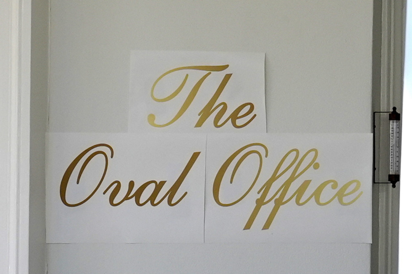 Μόνο σε έναν Τραμπ και το γούστο του θα μπορούσαμε να αποδώσουμε την πινακίδα που εμφανίστηκε έξω από το Οβάλ Γραφείο. Μπορεί να είναι ακόμη πρόχειρη, αλλά η πρόθεση του προέδρου είναι που μετράει.