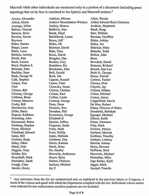 Όπως διευκρινίζεται, η αναφορά ονόματος δεν συνεπάγεται ενοχή ή εμπλοκή σε παράνομες πράξεις που συνδέονται με τα εγκλήματα σεξουαλικής κακοποίησης ανηλίκων του Έπσταϊν.