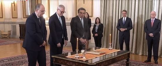 Στην ορκωμοσία των νέων μελών της κυβέρνησης παρέστιε και ο πρωθυπουργός Κυριάκος Μητσοτάκης.