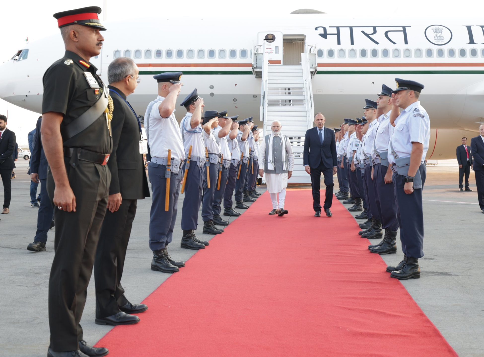 Νωρίτερα, στις 10:20 έγινε δεκτός από την Πρόεδρο της Δημοκρατίας Κατερίνα Σακελλαροπούλου. Ο Ναρέντρα Μόντι, είναι ο πρώτος αξιωματούχος της συγκεκριμένης χώρας που επισκέπτεται την Ελλάδα μετά από 40 χρόνια.