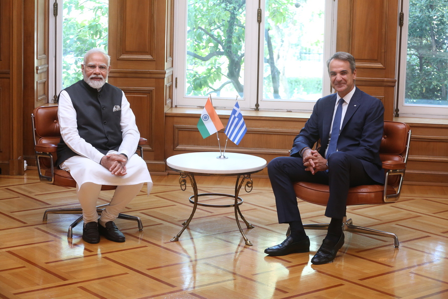 Η σημερινή επίσημη επίσκεψη του πρωθυπουργού της Ινδίας, Ναρέντρα Μόντι στην Ελλάδα, καθώς και οι επαφές του στην Αθήνα με την Πρόεδρο της Δημοκρατίας, Κατερίνα Σακελλαροπούλου και τον Έλληνα ομόλογο του, Κυριάκο Μητσοτάκη αντικατοπτρίζει τη στόχευση του Μεγάρου Μαξίμου αφενός να θέσει σε τροχιά αναβάθμισης και στρατηγικής συνεργασίας τις σχέσεις της Ελλάδος με την Ινδία, ήτοι την 5η μεγαλύτερη οικονομία του πλανήτη, καθώς και πολυπληθέστερη χώρα στον κόσμο με πληθυσμό 1,4 δισ. και αφετέρου να αναδείξει τη χώρα μας σε πύλη της Ινδίας προς την Ευρωπαϊκή Ένωση, όπως αναφέρουν αρμόδιες κυβερνητικές πηγές.