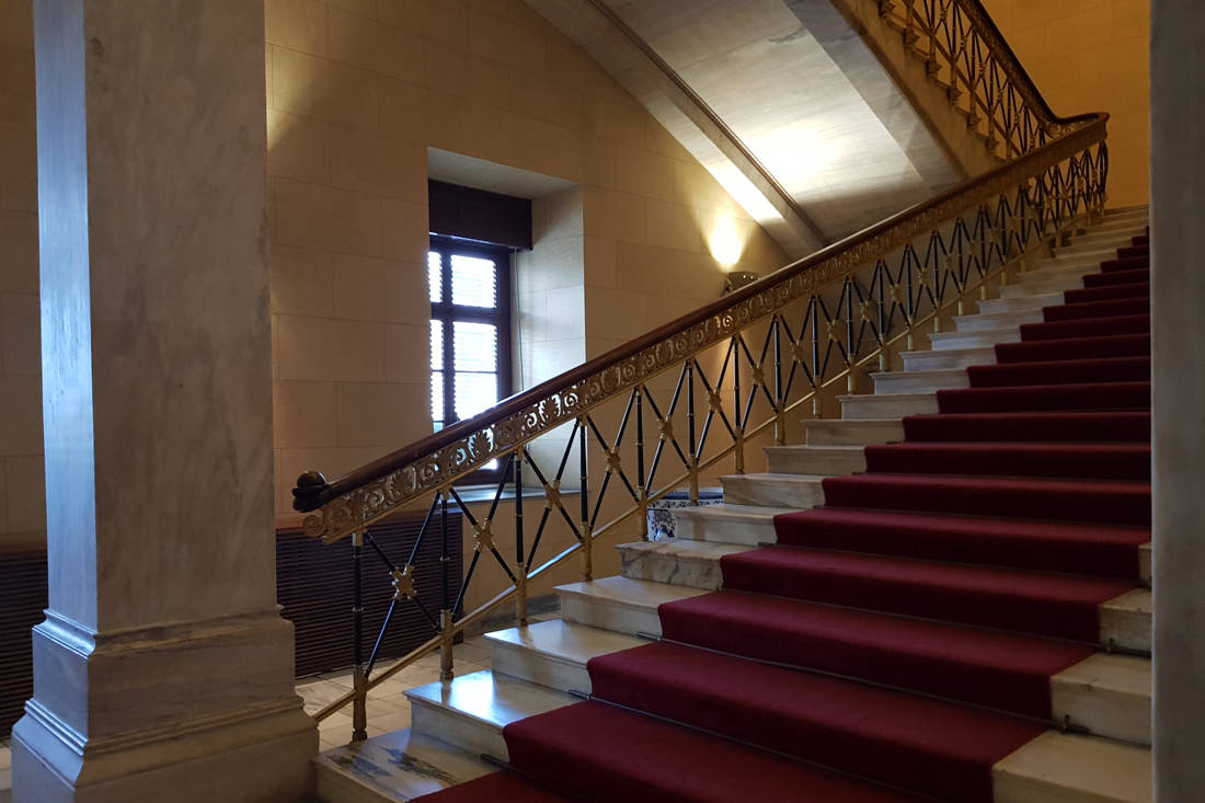 Και έτσι, καθώς περπατάς μπροστά από τη Βουλή, ίσως αξίζει να στρέψεις για λίγο το βλέμμα προς εκείνη την αριστερή πλευρά του ισογείου. Εκεί, ανάμεσα σε πέτρα και γύψο, ένα παράθυρο χωρίς σκοπό μαρτυρά σιωπηλά την παρουσία μιας σκάλας που άντεξε τα πάντα.