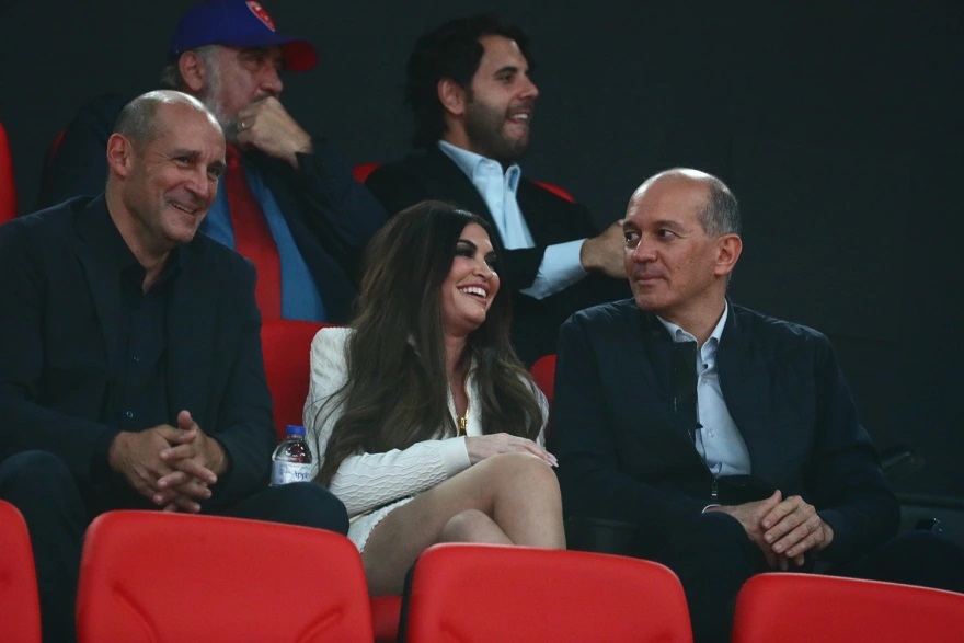 Η πρέσβης χαιρέτισε τον κόσμο και φωτογραφήθηκε στις εξέδρες των επισήμων, ανάμεσα στους ιδιοκτήτες της ΚΑΕ Ολυμπιακός, Παναγιώτη και Γιώργο Αγγελόπουλο.