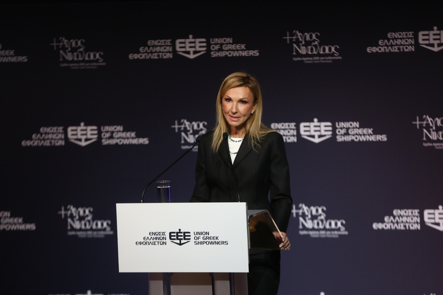 Αγαπητή κα Πρόεδρε, αγαπητή Μελίνα, αγαπητά μέλη του Διοικητικού Συμβουλίου της Ένωσης Ελλήνων Εφοπλιστών, Σεβασμιώτατοι, κυρίες και κύριοι συνάδελφοι στην κυβέρνηση και στο ελληνικό κοινοβούλιο, κύριοι Αρχηγοί, αγαπητή Μαρίζα, αγαπητέ Γιώργο, αγαπητέ Βασίλη,