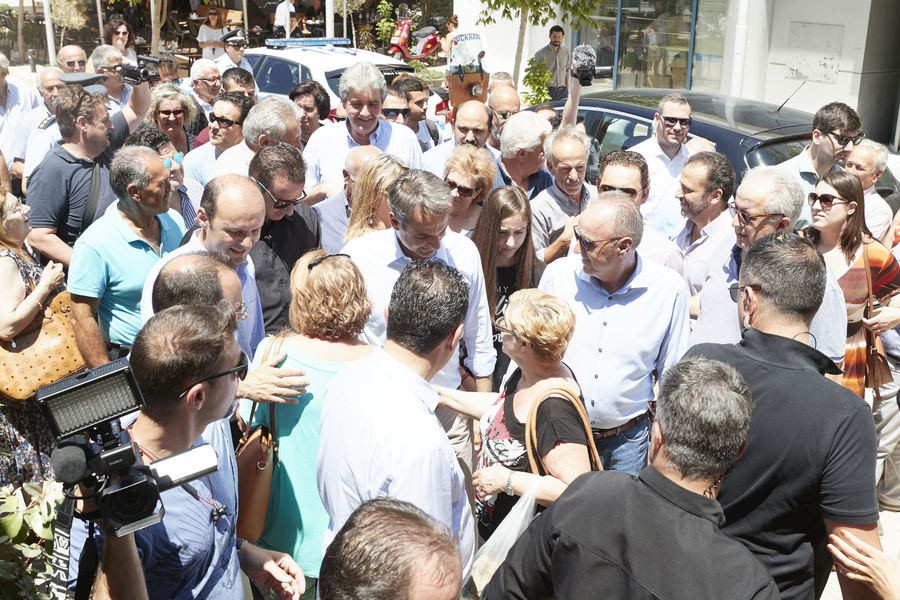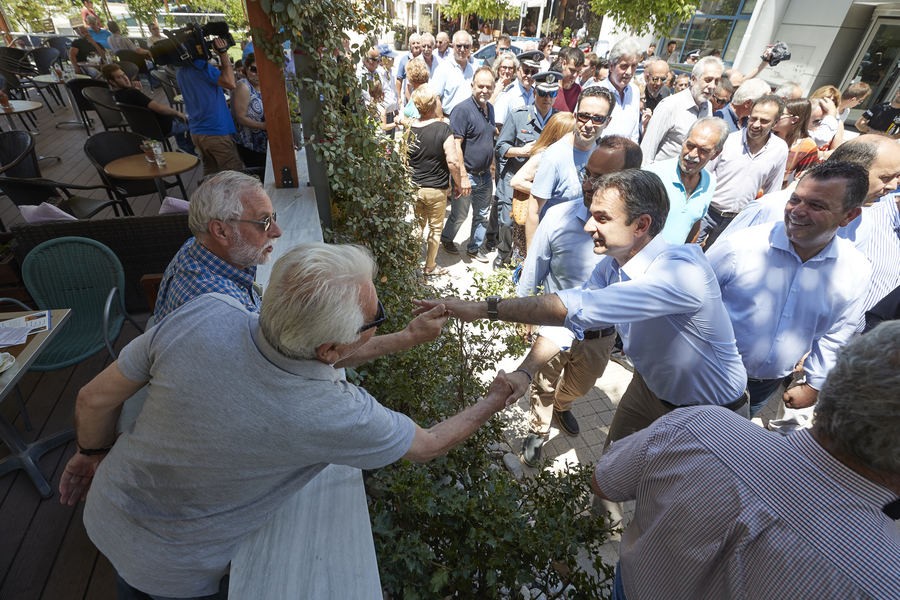 Ο πρόεδρος της Νέας Δημοκρατίας Κυριάκος Μητσοτάκης συνομιλεί με κατοίκους κατά την διάρκεια της περιοδείας του στην Μαγνησία
