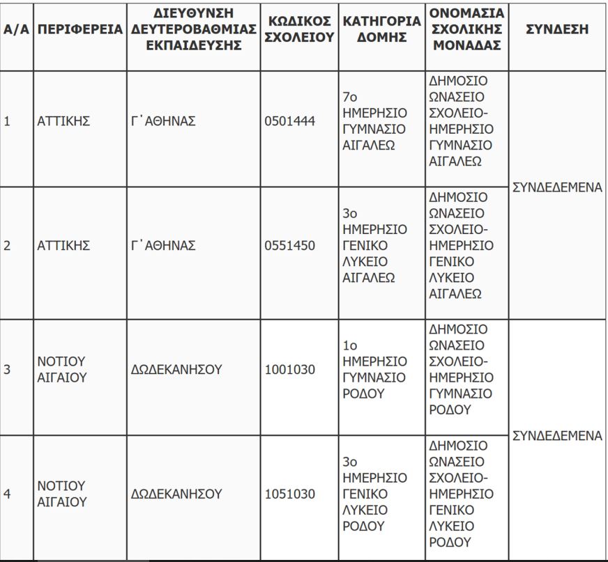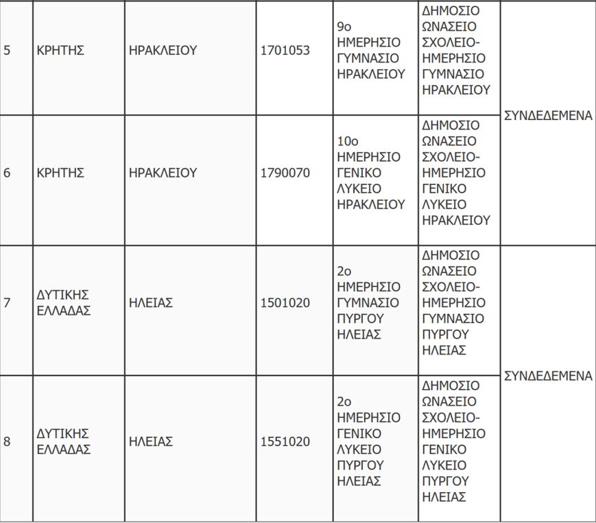 Οι 8 σχολικές μονάδες οι οποίες θα λειτουργήσουν από το σχολικό έτος 2026-2027: