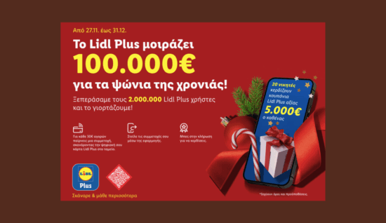 - 2 εκατομμύρια χρήστες Lidl Plus: Η Lidl Ελλάς το γιορτάζει, προσφέροντας 100.000€ για τα ψώνια της χρονιάς!
