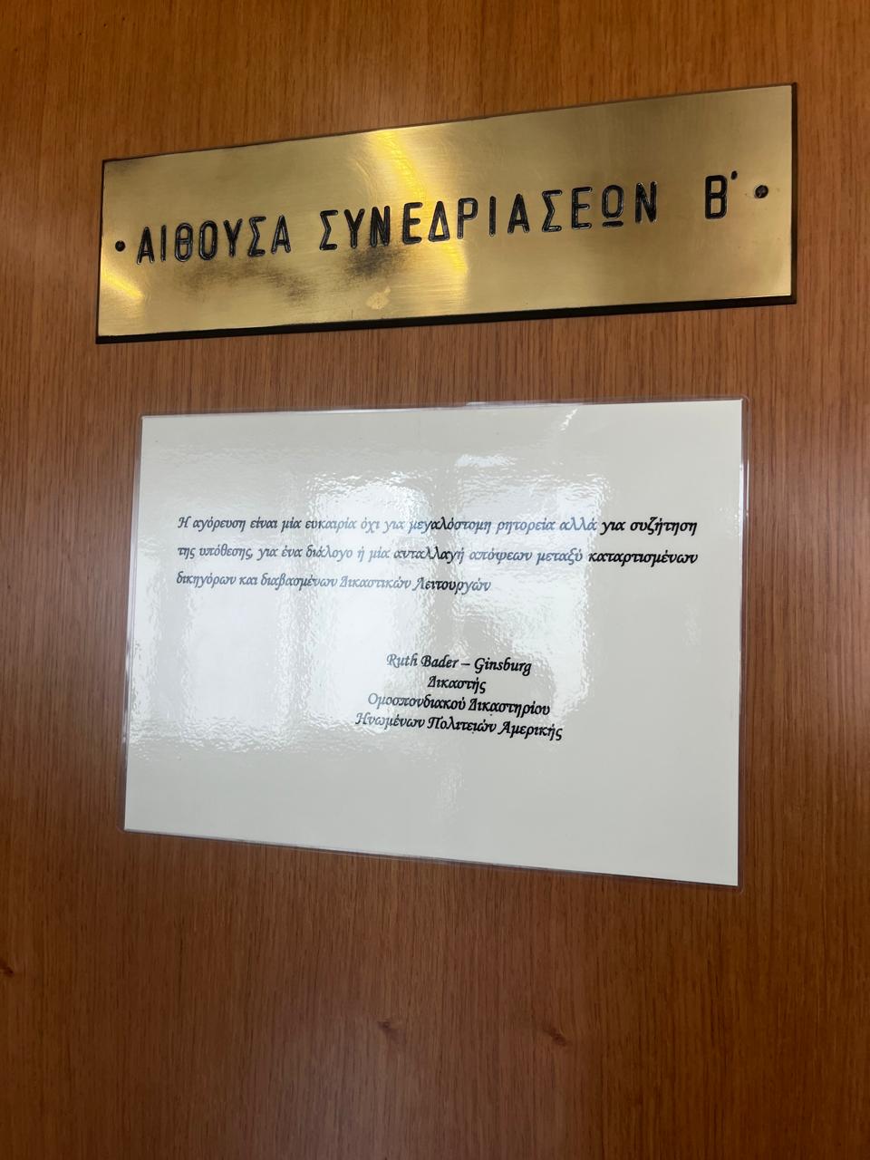 Στο ανακαινισμένο Αρσάκειο, το πρώτο πράγμα που πρόσεξα, είναι ότι μπήκε σε πλαστικοποιημένο χαρτί, μια φράση της Ρουθ Μπέιντερ Γκίνσμπεργκ, της αγαπημένης δικαστού και προτύπου της πρώην ΠτΔ Κατερίνας Σακελλαροπούλου. Καμία άλλη επιγραμματική φράση, κανενός άλλου δικαστή, Έλληνα ή ξένου δεν κοσμεί τους τοίχους του Αρσακείου.