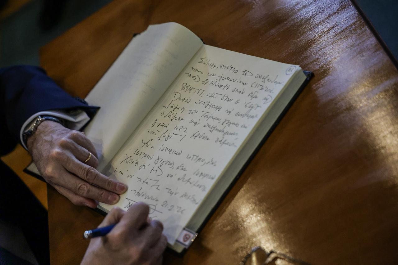 Το πρωί του Σαββάτου, ο Αρχηγός ΓΕΕΘΑ Δημήτριος Χούπης και στη συνέχεια ο εκπρόσωπος της Κυβέρνησης υφυπουργός Άμυνας Θανάσης Δαβάκης, ο Περιφερειάρχης Ηπείρου Αλέξανδρος Καχριμάνης και η βουλευτής και εκπρόσωπος του Προέδρου της Βουλής Μαρία Κεφάλα υποδέχτηκαν στον Πρόεδρο κατά την άφιξή του στον Ιερό Ναό του Αγίου Αθανασίου.