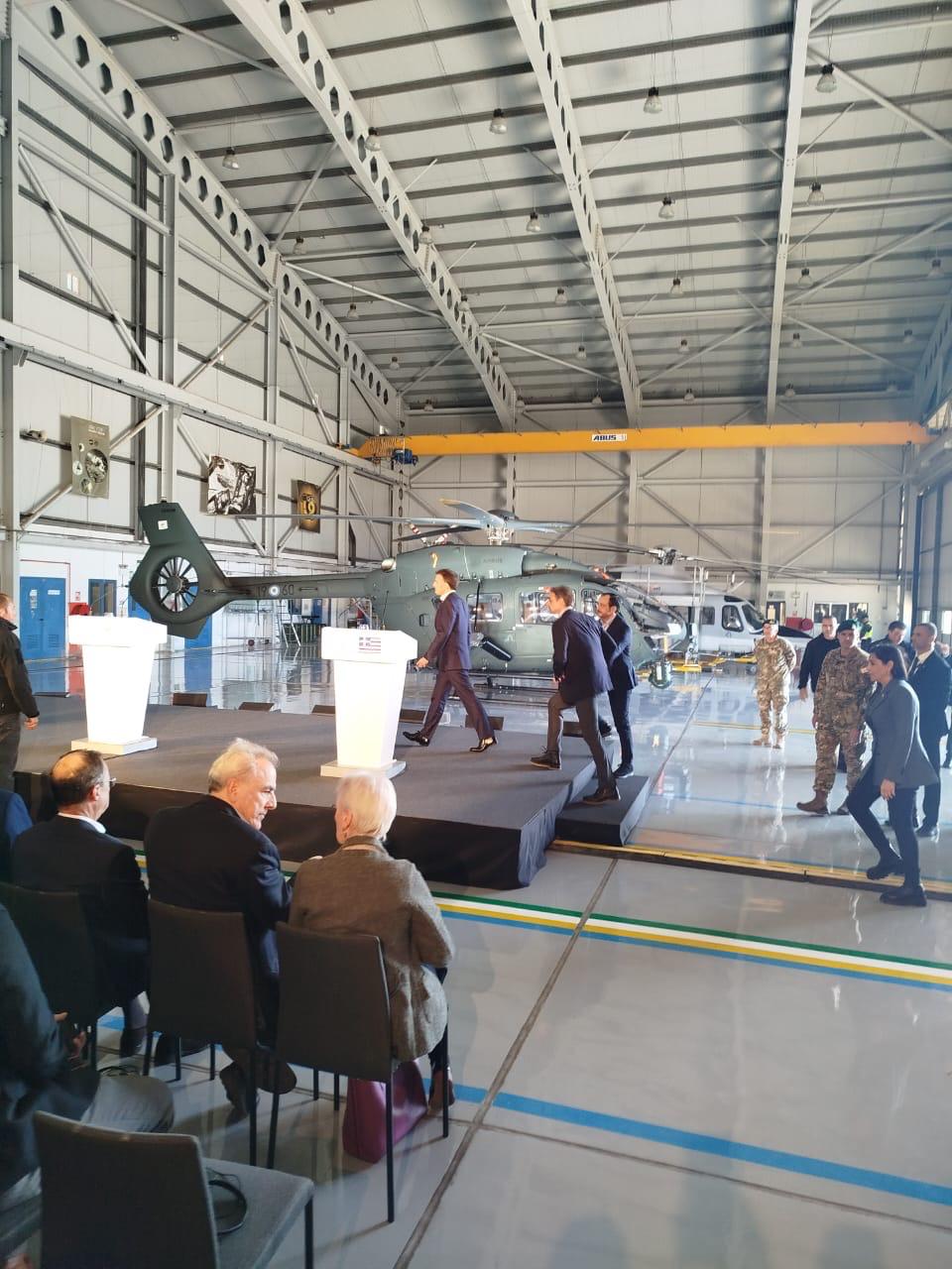 Η σύσκεψη πραγματοποιήθηκε στο διοικητήριο της βάσης και οι δηλώσεις σε ένα από τα μεγάλα υπόστεγα συντήρησης ελικοπτέρων. Και κάτι ακόμα: