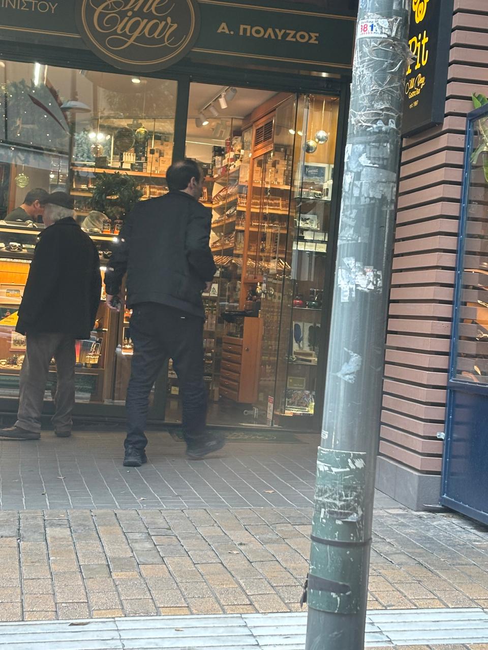 Μια το πρωί και μια το μεσημέρι. Και τις δύο φορές ήρθε με ταξί (και όχι με την αξίας 47.000 ευρώ Πόρσε του γιου του). Παρήγγειλε έναν διπλό ελληνικό σκέτο (τον ίδιο καφέ που πίνει και ο φίλος του «Χασάπης») και μόλις κάθισε άρχισε τα τηλεφωνήματα.