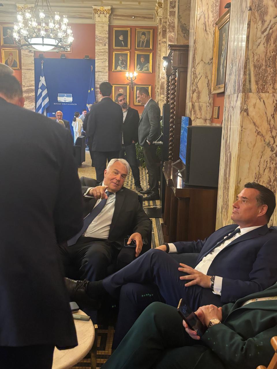 Η Κίμπερλι σήμερα πάει Μέγαρο Μαξίμου για προγραμματισμένη συνάντηση με τον Πρωθυπουργό ΚΜ. Θα μπορούσε να έλεγε κανείς ότι ο λόγος της συνάντησης είναι οι υπογραφές που έπεσαν για τις γεωτρήσεις, αλλά μου λένε, ότι απλώς είναι μια προγραμματισμένη συνάντηση που την ζήτησε η Αμερικανίδα πρέσβης. Άλλωστε μόλις είχε αρχίσει ο πόλεμος στη Μέση Ανατολή, όλοι οι Αμερικανοί πρέσβεις σε όλο τον κόσμο κλήθηκαν από το Στέιτ Ντιπάρτμεντ να περιορίσουν την πολιτική τους δραστηριότητα στο ελάχιστο.