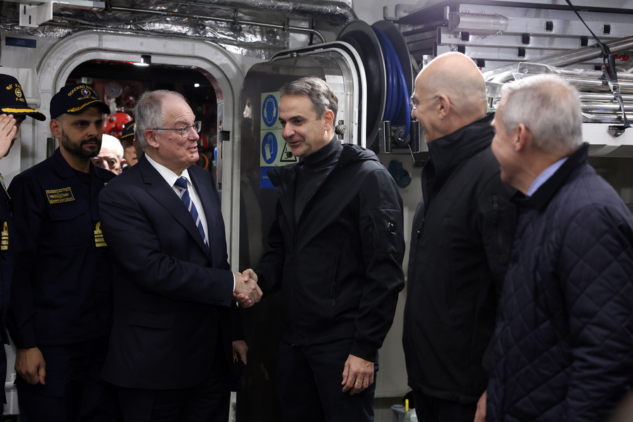 Στην τελετή που πραγματοποιείται στον Σαρωνικό παρίστανται ο Πρόεδρος της Δημοκρατίας Κωνσταντίνος Τασούλας, ο πρωθυπουργός Κυριάκος Μητσοτάκης και ο υπουργός Εθνικής Άμυνας Νίκος Δένδιας, ενώ στην υποδοχή συμμετέχουν συνολικά έξι πλοία του Πολεμικού Ναυτικού, προσδίδοντας ιδιαίτερη επισημότητα στη διαδικασία.