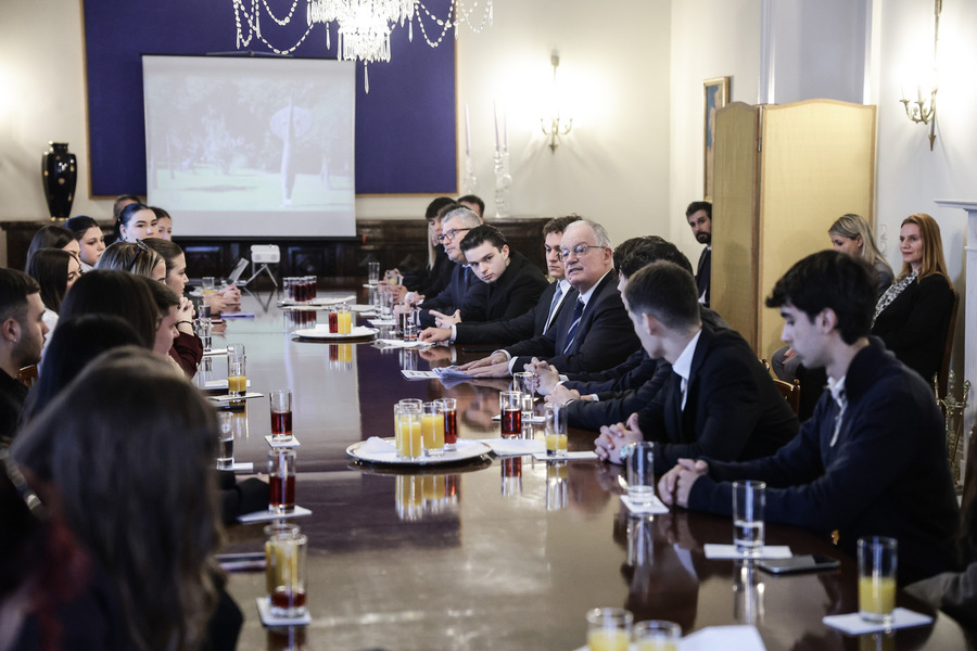 Ο Πρόεδρος της Δημοκρατίας Κωνσταντίνος Τασούλας συναντήθηκε νωρίτερα σήμερα, με ομάδα 33 φοιτητών του Τμήματος Πολιτικής Επιστήμης και Διεθνών Σχέσεων του Πανεπιστημίου Πελοποννήσου και τον Αν. Καθηγητή του τμήματος Χαράλαμπο Τσιλιώτη.