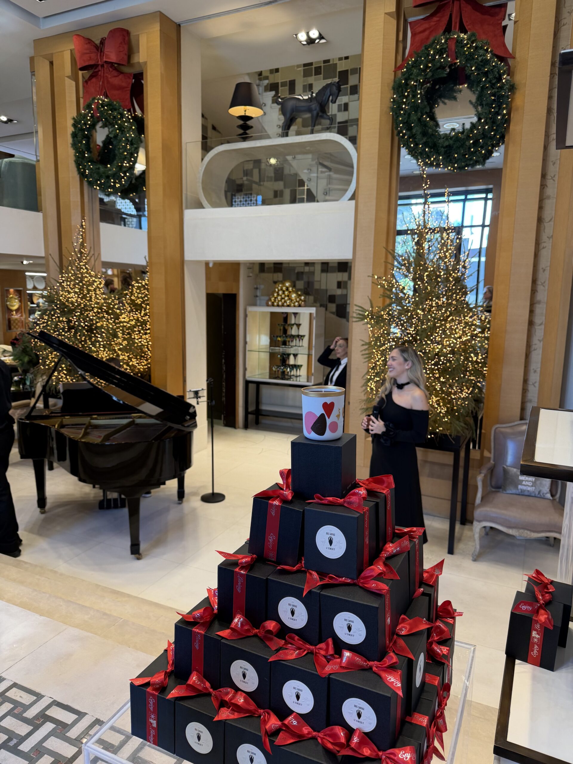 Η ιδέα της Λώρας Τσουκαλά αποδείχθηκε και καινοφανής. Να συγκεράσει την επέτειο της L’ Objet με έναν έλληνα δημιουργό και τη στήριξη του σωματείου. Ζήτησε λοιπόν από τον δημοφιλή καλλιτέχνη Cacao Rocks να συνθέσει ορισμένα σχέδια τα οποία εν συνεχεία οι εξαιρετικοί χειρονάκτες της L’ Objet αποτύπωσαν με την απαράμιλλη τεχνική τους σε δοχεία για κεριά. Όλα τα έσοδα από τις πωλήσεις τους στηρίζουν τους σκοπούς της «Ελπίδας». Από την εκδήλωση λοιπόν δεν μπορούσε να απουσιάζει η πρόεδρος του σωματείου Χριστιάννα Β. Βαρδινογιάννη.