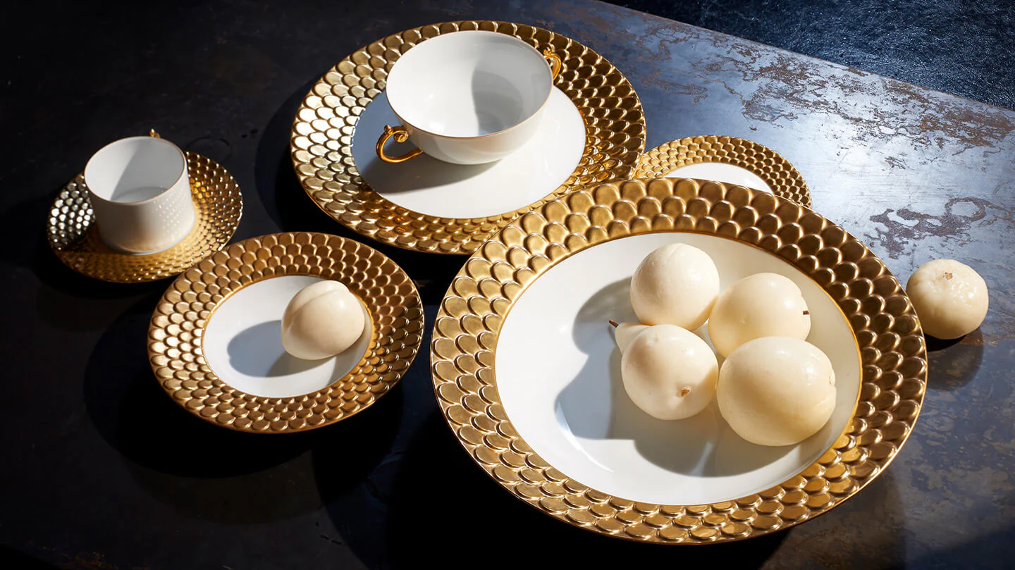 Ένα από τα πιο ξεχωριστά της χαρακτηριστικά παραμένει ο χρυσός των είκοσι τεσσάρων καρατίων ο οποίος μπορεί να αποτελεί διακοσμητικό στοιχείο σε μεμονωμένα αντικείμενα αλλά και σε στοιχεία art de la table. Το υπερπολυτελές, στιλπνό αποτέλεσμα επιτυγχάνεται με καινοφανείς τεχνικές επίστρωσης, φινιρίσματος και γλυπτικής πλαστικότητας.