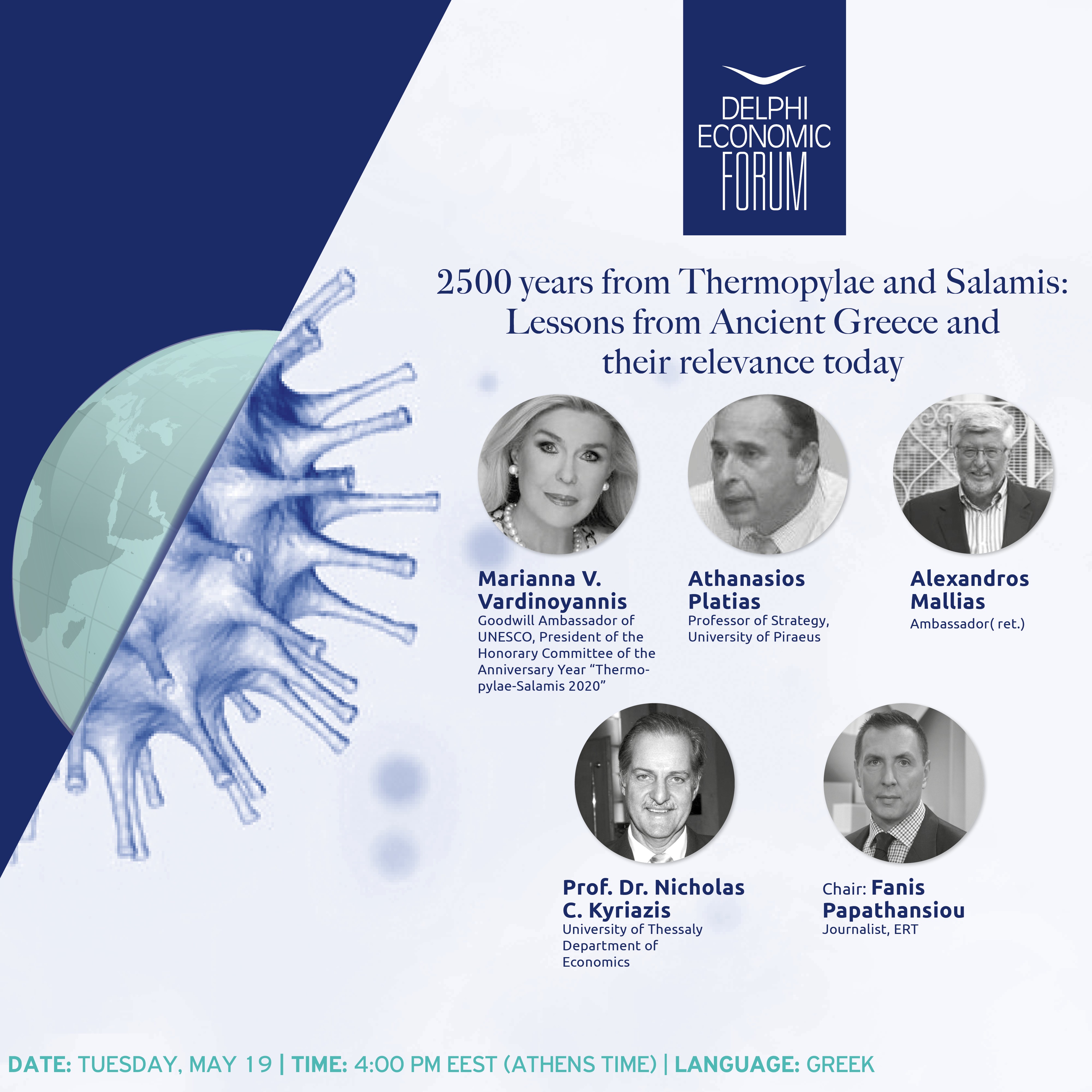 Με εξαιρετικά σημαντικές παρατηρήσεις εξελίχθηκε η συζήτηση που διοργάνωσε το Ίδρυμα Μαριάννα Β. Βαρδινογιάννη με τίτλο 2500 years from Thermopylae and Salamis: Lessons from Ancient Greece and their relevance today με τη συμμετοχή της προέδρου την οποία πλαισίωσαν επιφανείς προσωπικότητες: ο καθηγητής Στρατηγικής (παν/μιο Πειραιά) Αθανάσιος Πλατιάς, ο διπλωμάτης Αλέξανδρος Μαλλιάς και ο καθηγητής Οικονομικών (παν/μιο Θεσσαλίας) Νικόλας Κυριαζής. Τη συζήτηση άρτια συντόνισε ο δημοσιογράφος Φάνης Παπαθανασίου. Η διαδικτυακή συζήτηση πραγματοποιήθηκε με την υποστήριξη του Συμεών Τσομώκου, ιδρυτή και προέδρου του Οικονομικού φόρουμ Δελφών.