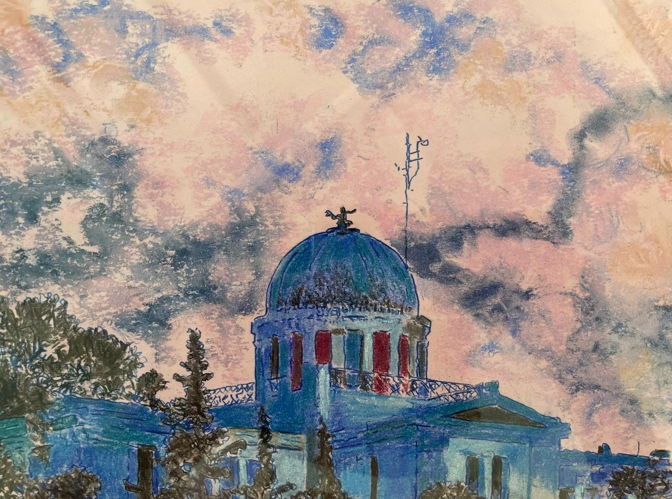 Η συζήτηση συνεχίζεται στο δώμα του σπιτιού της όπου διατηρεί το εργαστήριό της. Πλαισιώνεται από μια άνετη ταράτσα σε απόσταση αναπνοής από το πυκνό δάσος της Πύκνας και το Αστεροσκοπείο από τη μια πλευρά. Από την άλλη μεσουρανεί ξανά ο Παρθενώνας, η Αρχαία Αγορά, όλη η Αθήνα στο πιάτο.