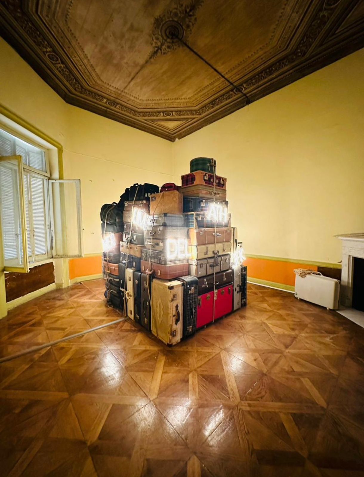 Στο έργο Check in (2024, διεθνής ομαδική έκθεση Μέγαρο Σλίμαν-Μελά) μία μνημειώδης κατασκευή από μπαούλα και βαλίτσες (σαν objets trouvés, με διαστάσεις μεταβλητές) αποτελεί απόπειρα να συλλάβει την Ελευθερία. Η έννοια του περάσματος δεν αποδίδεται αφηγηματικά αλλα ως υπαρξιακός σταθμός.