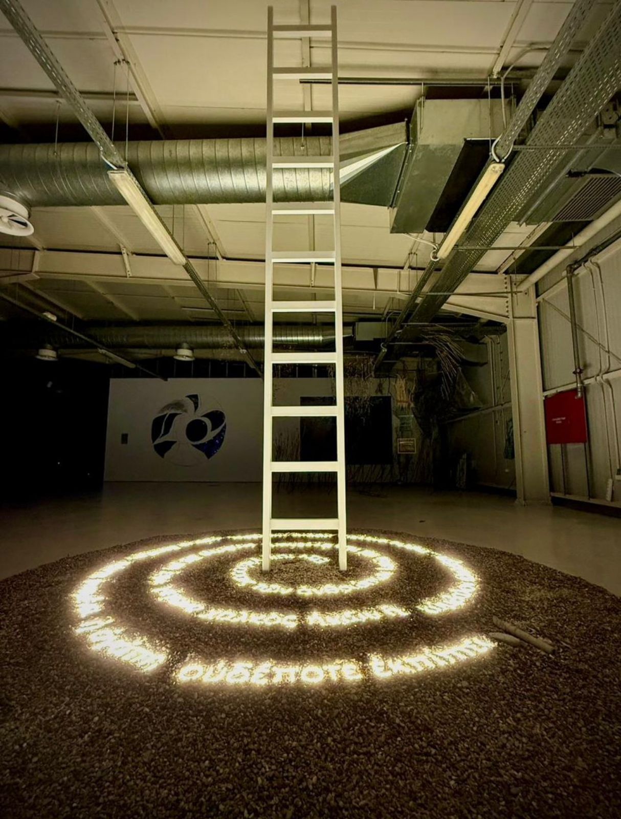 Στο Scala Paradisi (2025, διεθνής ομαδική έκθεση στον Διεθνή Αερολιμένα Αθηνών) μια λευκή σκάλα αιωρείτα φαινομενικά στο κενό σαν δομή εξύψωσης.
