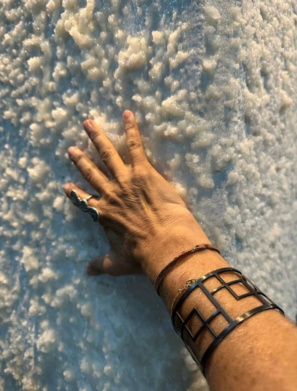 Αλλά τα εντυπωσιακά αυτά γλυπτά δεν αποτελούν απλώς επιφανειακές εγκεφαλικές συλλήψεις. Η πυκνότητα αισθητικής και νοήματος, η ενότητα του ύφους τους οφείλεται στην ίδια. Το βότσαλο από την Τήνο που χρησιμοποιήθηκε στο Scala Paradisi δεν ταξίδεψε τυχαία από το νησί. Το άλας στη Γυναίκα του Λωτ προέκυψε ύστερα από ενδελεχή μελέτη, με την επιμονή του μοναχικού επιστήμονα από πλευράς της.