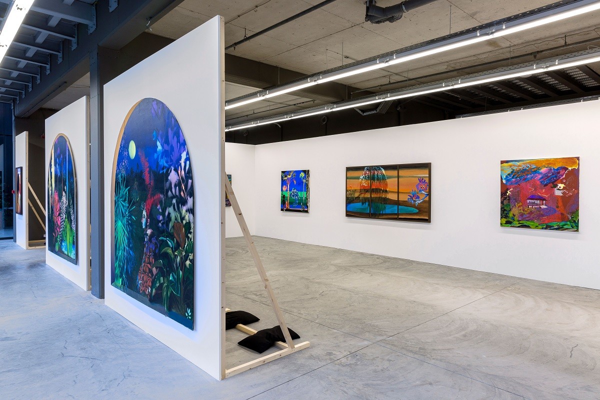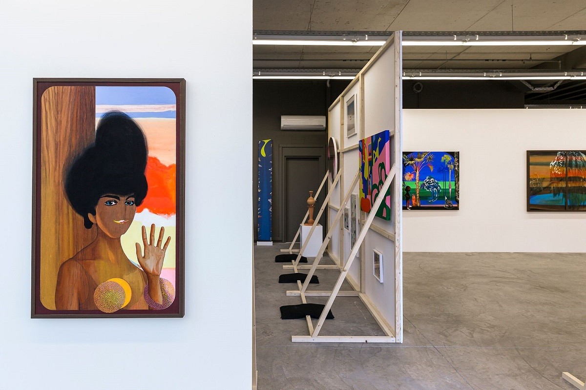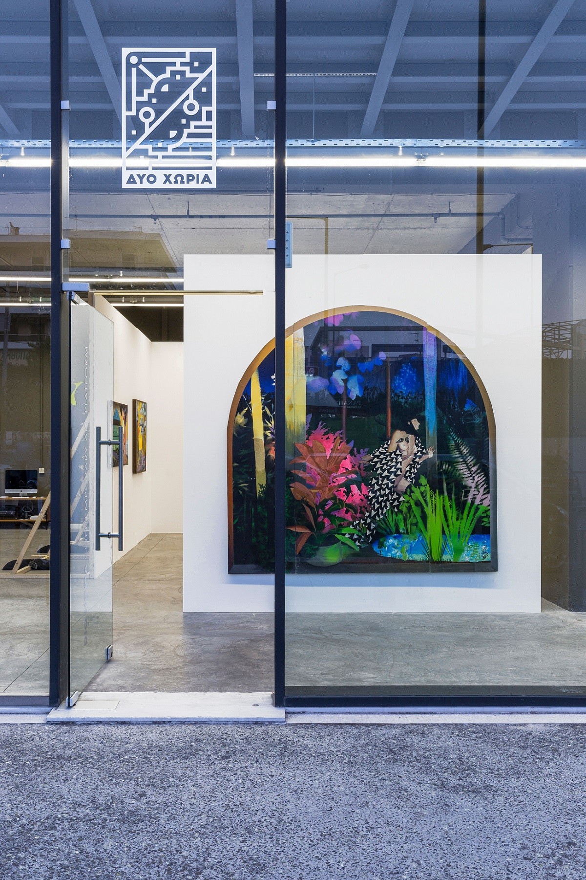 Πέρα από την καθαρή ομορφιά των έργων, εντυπωσιάζει και το στήσιμο της έκθεσης: Περνώντας μέσα από τις ψηλές βιτρίνες, στο εσωτερικό ενός ψηλοτάβανου χώρου με βιομηχανική αισθητική (σχεδόν απέναντι από το πρώτο μεγάλο κατάστημα ΑΒ στην Ελλάδα), μεγάλης κλίμακας πίνακες με ζεστά χρώματα κρέμονται σε μινιμαλιστικά πανέλα τα οποία στηρίζονται στο έδαφος με μαύρους, δεκάκιλους σάκκους. Σε κάθε έκθεση θα τροποποιείται ο χώρος καθώς και η εμπειρία του θεατή.