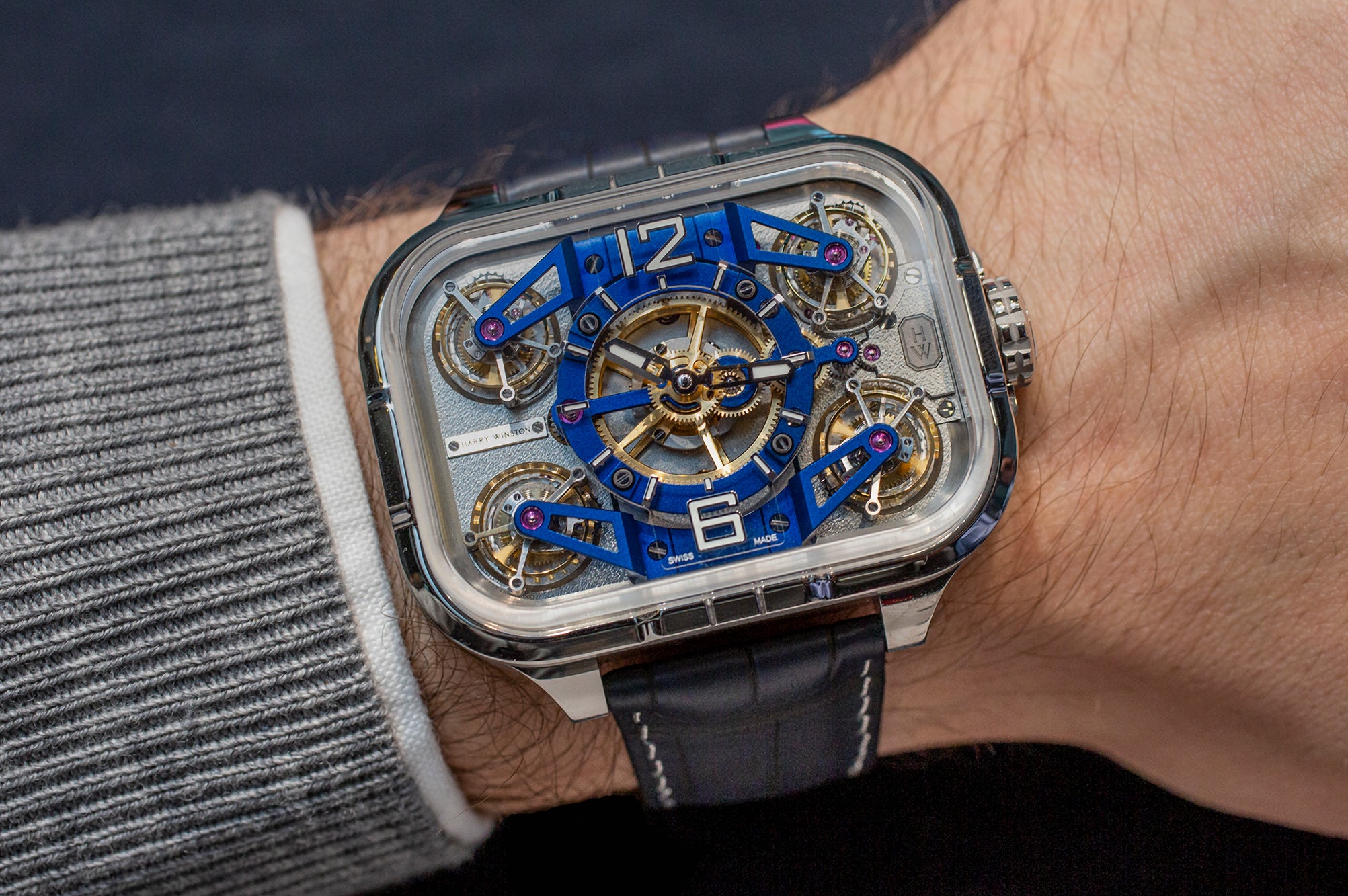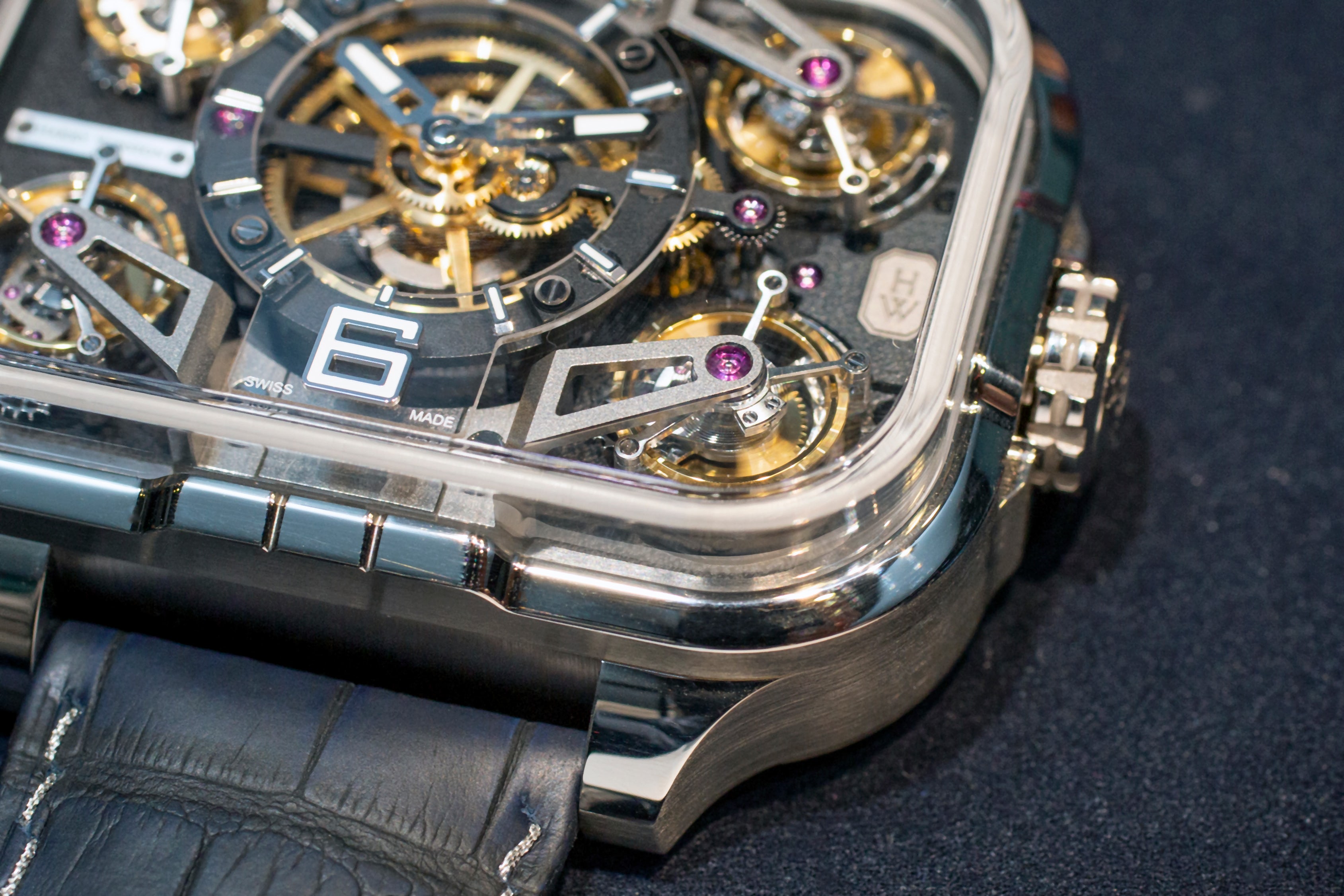 Τα τέσσερα «κλουβιά» των τουρμπιγιόν περιστρέφονται με τη φορά των δεικτών του ρολογιού κάθε 36 δευτερόλεπτα (ταχύτερα από τη συνήθη περιστροφή των 60 δευτερολέπτων) με συχνότητα 21.600 vph (3 Hz). Για τη λειτουργία τους απαιτείται αρκετή ενέργεια: το απόθεμα ενέργειας του ρολογιού είναι στις 55 ώρες, μάλλον χαμηλό για ένα τόσο μεγάλο σε διαστάσεις ρολόι (53,30 x 39,10 x 17,60 χιλιοστά), όπως αναφέρει το Hodinkee.