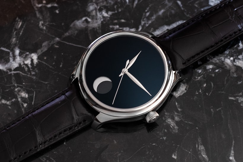 Η τελευταία προσθήκη σε αυτήν τη σειρά, σύμφωνα με το εξειδικευμένο site Hodinkee, είναι το Endeavor Perpetual Moon Concept, που πραγματικά ανεβάζει τον πήχη στο επόμενο επίπεδο. Το καντράν αυτού του ρολογιού φέρει επικάλυψη από Vantablack, ένα υλικό που έχει αναπτύξει η ίδια η H. Moser και χρησιμοποιεί νανοσωλήνες άνθρακα για να απορροφά το φως. Το αποτέλεσμα είναι ένα μαύρο που εμφανίζεται πιο μαύρο από οποιαδήποτε άλλη ουσία κατασκευασμένη από τον άνθρωπο. Εδώ χρησιμοποιείται σε ένα ρολόι με τις φάσεις της σελήνης, όπου το φεγγάρι στις 6 δείχνει σχεδόν σαν να επιπλέει πάνω σε αυτό το μαύρο φόντο. Μάλιστα, οι γυαλιστεροί δείκτες και το φεγγάρι υπογραμμίζουν ακόμη περισσότερο με τη λάμψη τους την ένταση του μαύρου, δημιουργώντας ένα άκρως εντυπωσιακό αποτέλεσμα.