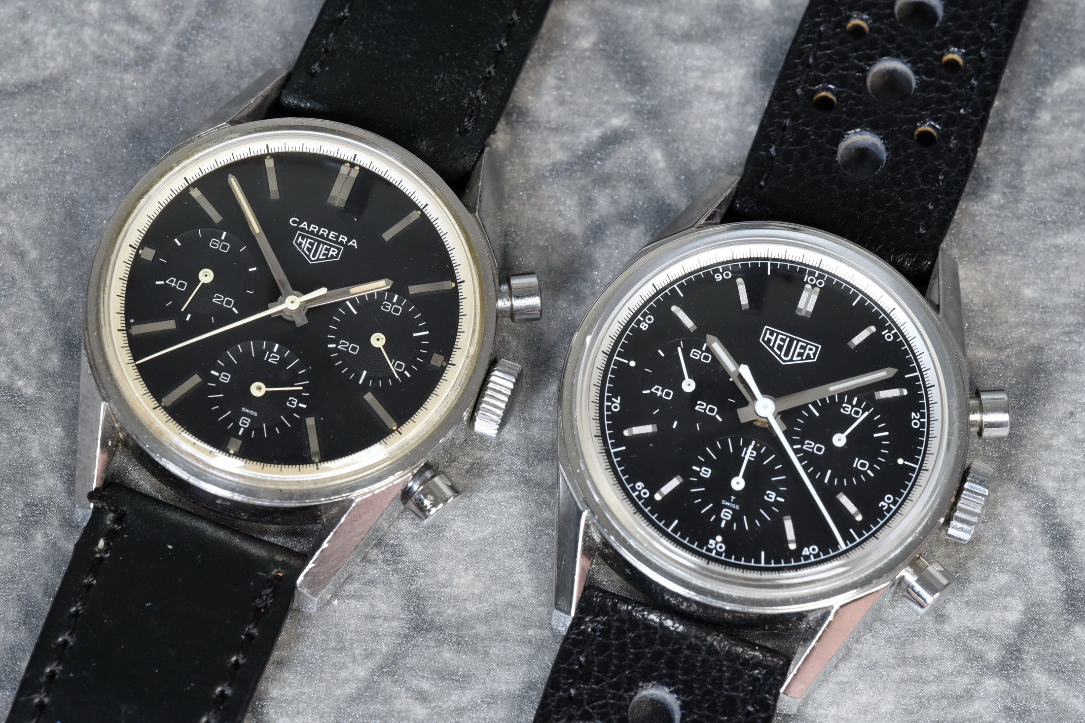 Στο νέο Carrera, τα “μίνι ρολόγια” είναι μεγαλύτερα σε μέγεθος απ’ ό,τι στη δεκαετία του ’60, αξιοποιώντας τον διαθέσιμο χώρο. Το όνομα Carrera και το έμβλημα της Heuer είναι επίσης μεγαλύτερα σε μέγεθος και πιο έντονα. Το καντράν δεν είναι καμπυλωτό, αλλά ίσιο. Και φυσικά, μεταξύ 4 και 5, βλέπουμε την ονομασία της Fragment.