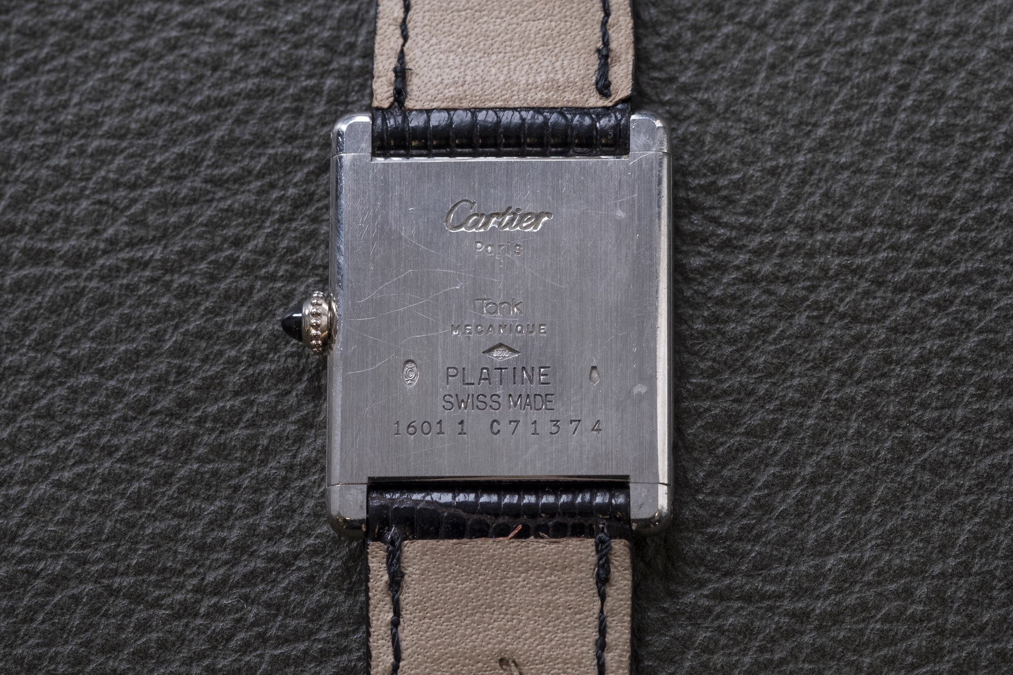 Τα παλιά ρολόγια της σειράς Tank ήταν κατά κύριο λόγο χρυσά, και τα ρολόγια της σειράς σε άλλους χρωματισμούς πριν από τη δεκαετία του 1990 είναι σπάνια – και τα πιο σπάνια απ’ όλα είναι τα πλατινένια. Αυτό ακριβώς έχουμε εδώ: ένα σπάνιο Cartier Tank με κάσα από συμπαγή πλατίνα και διάμετρο 30 χιλιοστών στο ύψος και 23,5 στο πλάτος του καντράν.