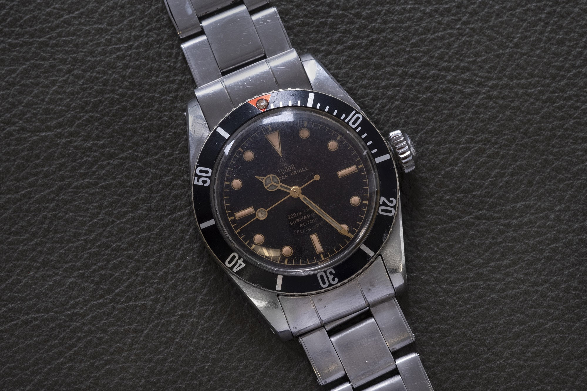 Δεν υπάρχει δημοπρασία ρολογιών που να μην έχει έστω και ένα Submariner, όμως σε λίγες δημοπρασίες βρίσκει κανείς ένα τέτοιο Submariner. To Tudor Big Crown ref. 7924 είναι κατά κάποιον τρόπο το αντίπαλον δέος του ref. 6538 Submariner της Rolex, που έγινε διάσημο από τον Τζέιμς Μποντ. Είναι εξαιρετικά σπάνιο, με χοντρή κάσα, με ένα χαρακτηριστικό κόκκινο τρίγωνο στην κορυφή του στεφανιού και με ένα ιδιαίτερο καντράν. Είναι αυτό που θα λέγαμε ένα “τίμιο” ρολόι, που ναι μεν δεν κρύβει τα χρόνια που έχουν περάσει από πάνω του (κατασκευάστηκε το 1958), αλλά το κάνει με χάρη και γοητεία.