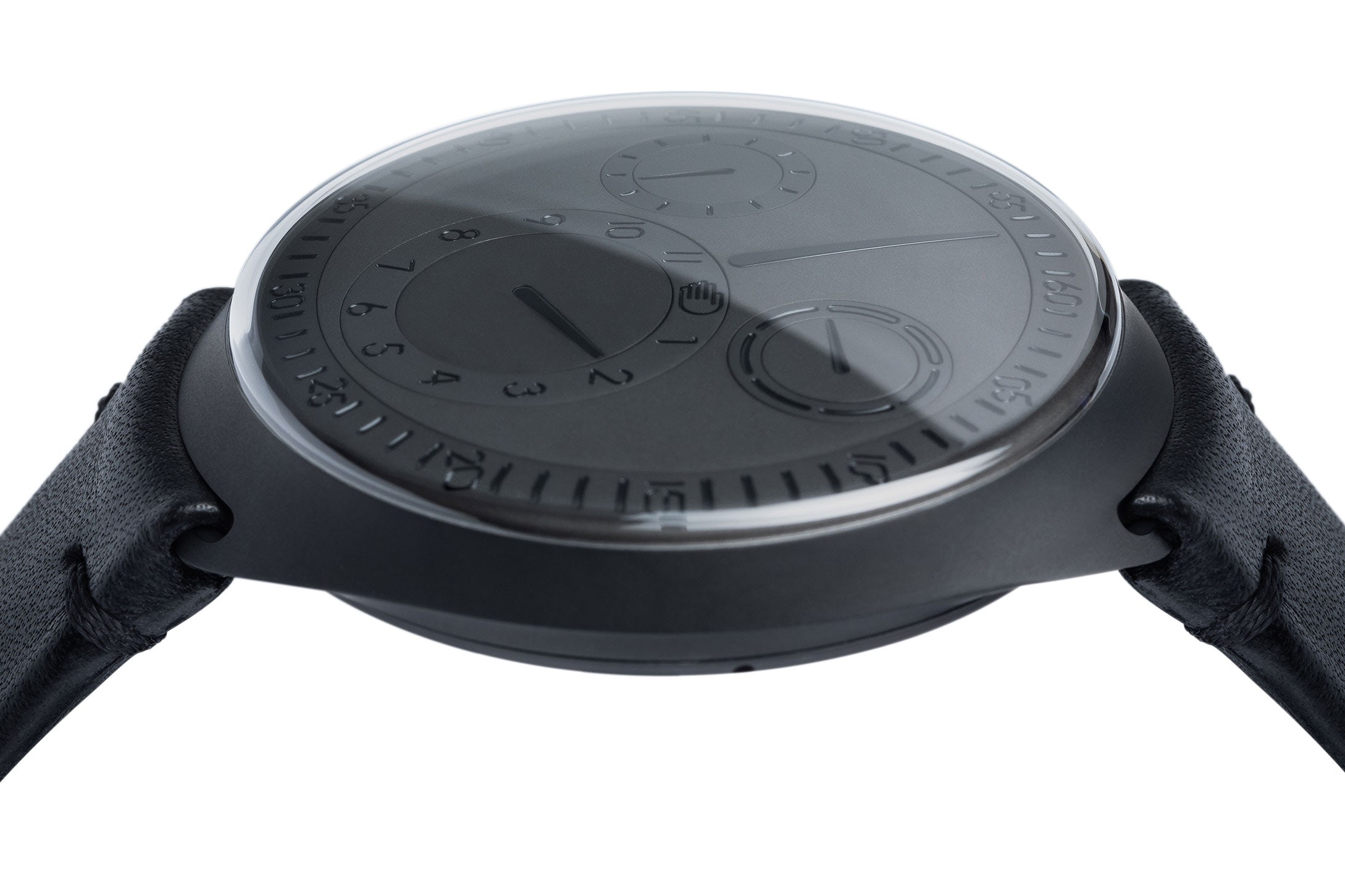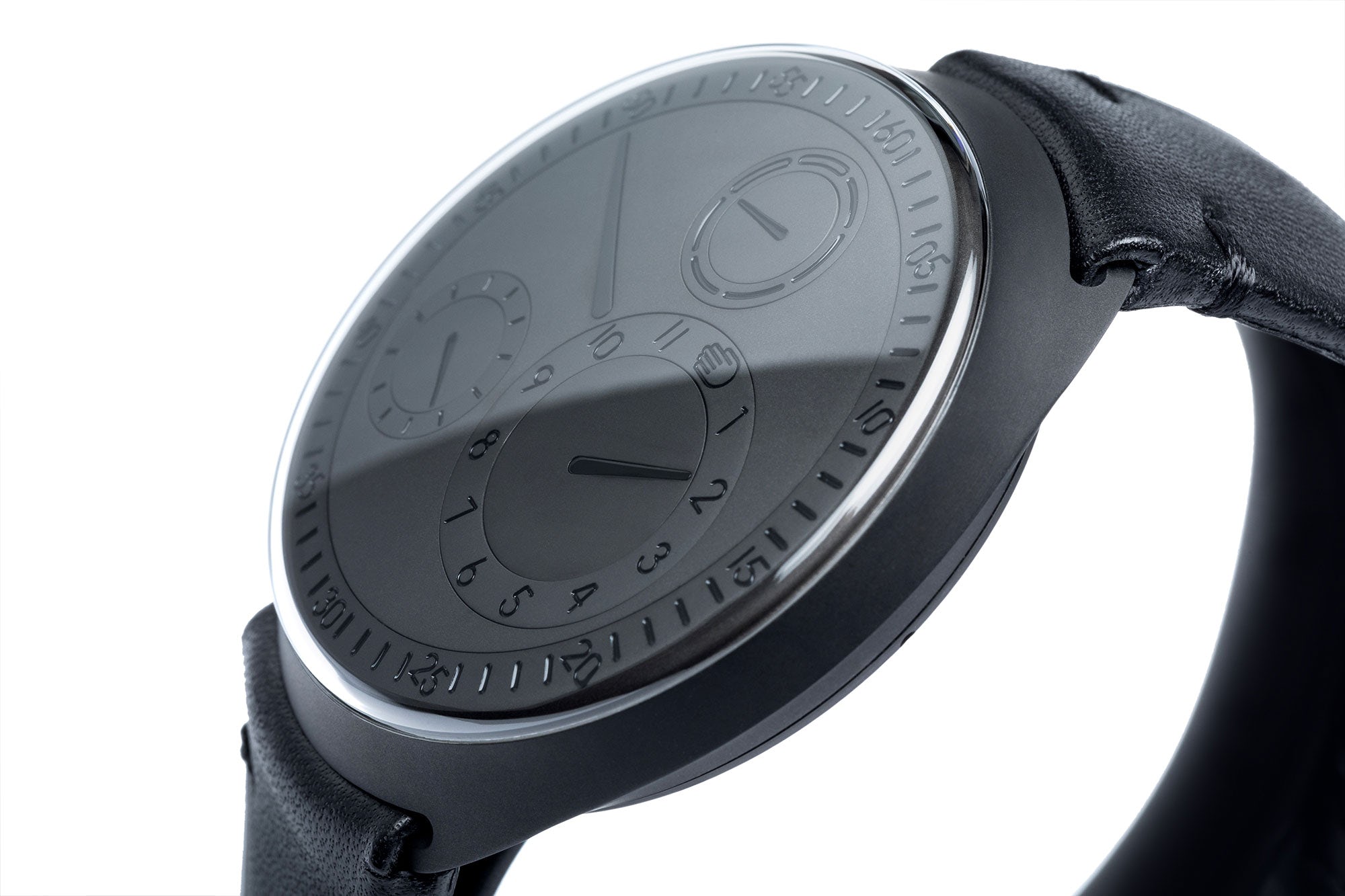Το Type 1ZZ είναι μία περιορισμένη έκδοση του δημοφιλέστερου ρολογιού της Ressence, σε full black εκδοχή – αν και η εταιρεία περιγράφει το καντράν ως «σκούρο γκρι», και πράγματι, η χρήση αυτού του χρώματος είναι διακριτική και αποτελεσματική. Το κοντράστ με το μαύρο λουρί και τους μαύρους δείκτες είναι επαρκές για να είναι διακριτή η ώρα και δίνει μεγαλύτερο βάθος στο ρολόι.