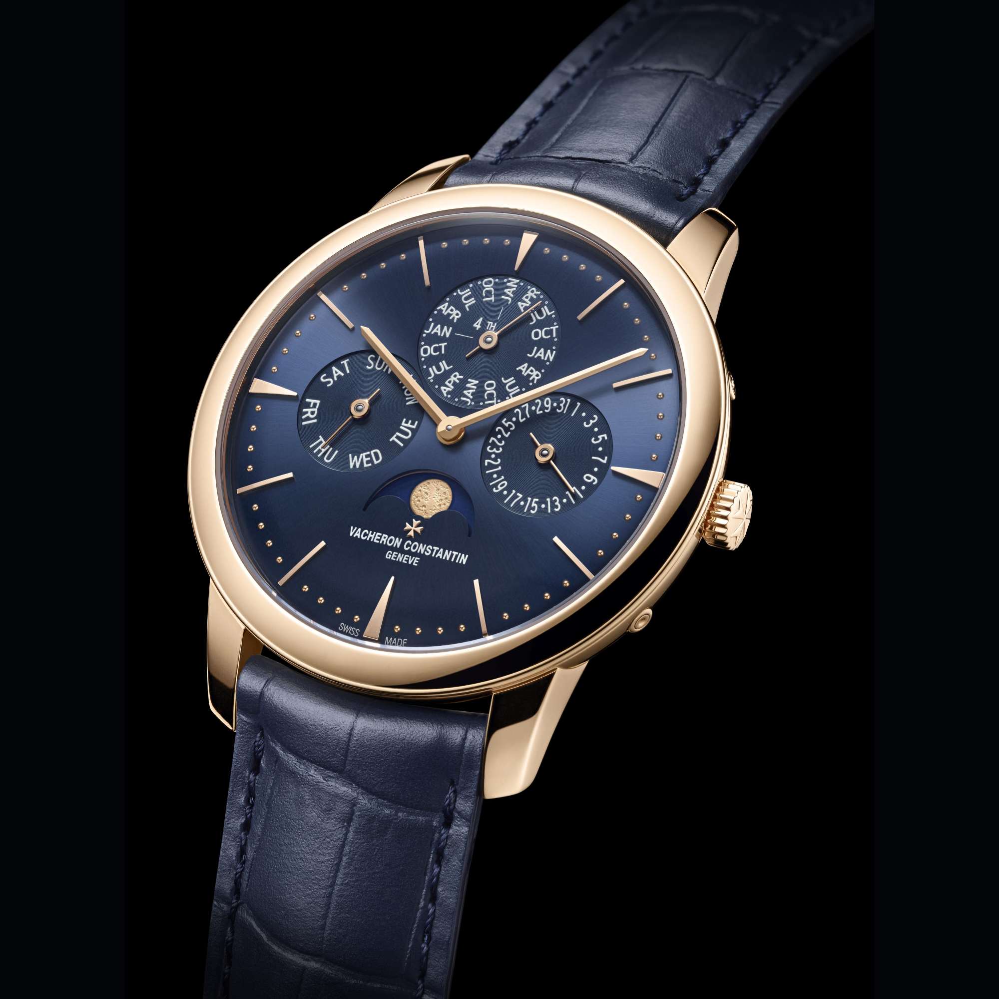 H τέταρτη εκτέλεση του Patrimony Perpetual Calendar Ultra-Thin της Vacheron Constantin με μπλε καντράν δίνει συνέχεια σε μία σειρά που βρίσκεται στη συλλογή της εταιρείας εδώ και οκτώ χρόνια.