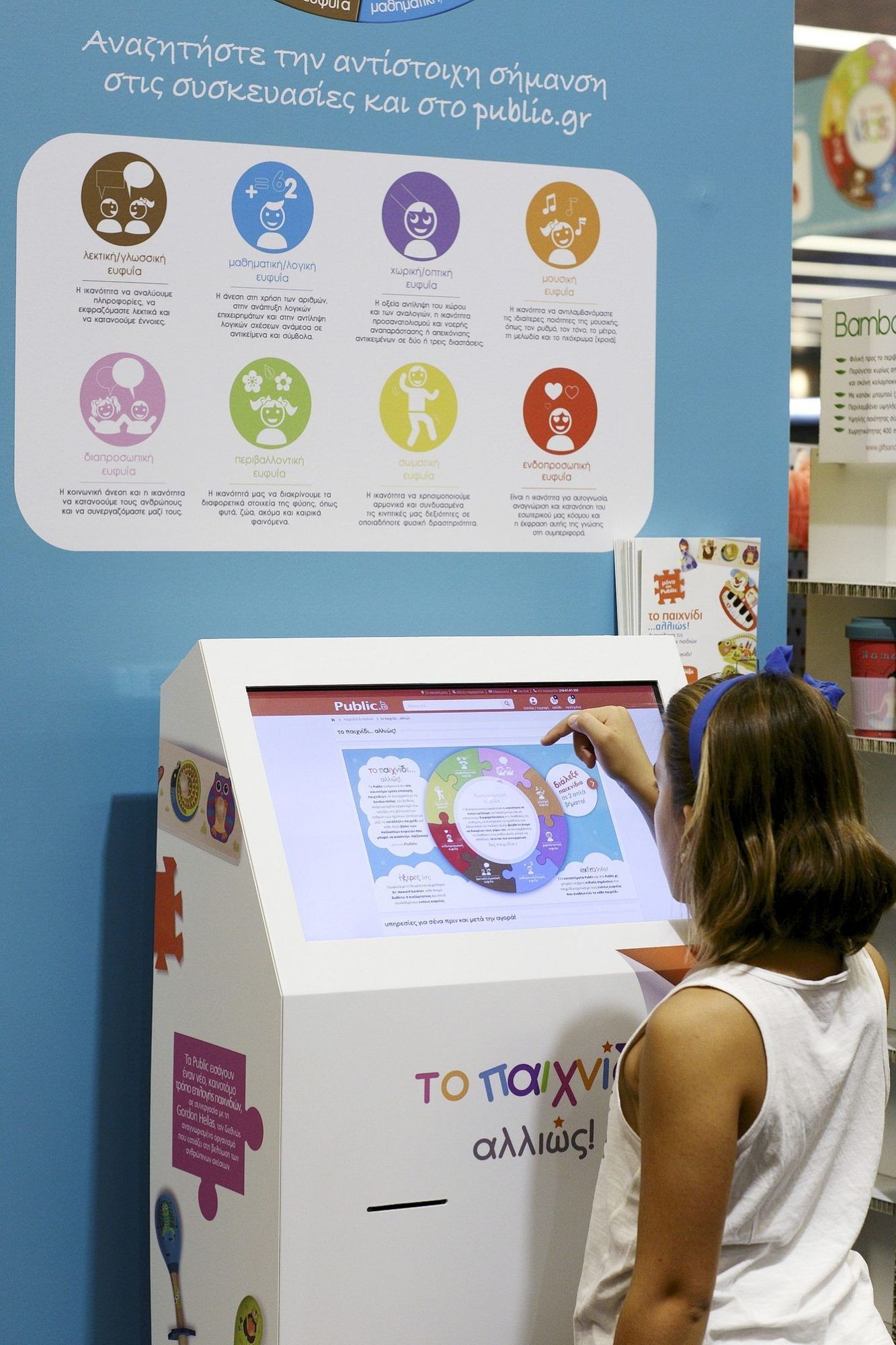 Η κατηγοριοποίηση όλων των παιχνιδιών έχει εφαρμοστεί και σε 4 καταστήματα Public (Γλυφάδα, Κολωνάκι, The Mall, Πυλαία) με ειδικές σημάνσεις. Ταυτόχρονα, το έμπειρο και εκπαιδευμένο προσωπικό, είναι στη διάθεση των καταναλωτών για να τους κατευθύνει στην αναζήτηση αυτή.