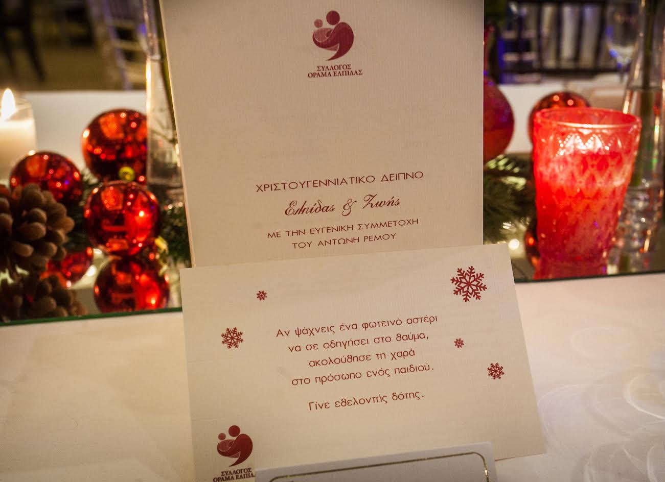 Το δείπνο πραγματοποιήθηκε στο ballroom του ξενοδοχείου Athenaeum Intercontinental Athens και τα έσοδά του θα διατεθούν για την υποστήριξη των σκοπών του Συλλόγου «ΟΡΑΜΑ ΕΛΠΙΔΑΣ» και της Τράπεζας Εθελοντών Δοτών Μυελού των Οστών.