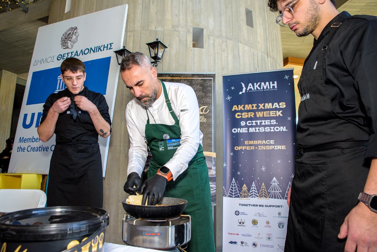 • Στη Θεσσαλονίκη, οι μελλοντικοί chefs της ΑΚΜΗΣ, μαζί με τους καθηγητές τους, προσφέρουν ζεστασιά και γεύση μέσα από ένα live cooking event στο Δημαρχείο.