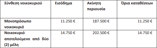 Α/ Για δανειολήπτες που πληρούν τα εξής περιουσιακά και εισοδηματικά όρια, καθώς και όρια καταθέσεων της παρούσας (Κατηγορία 1):
