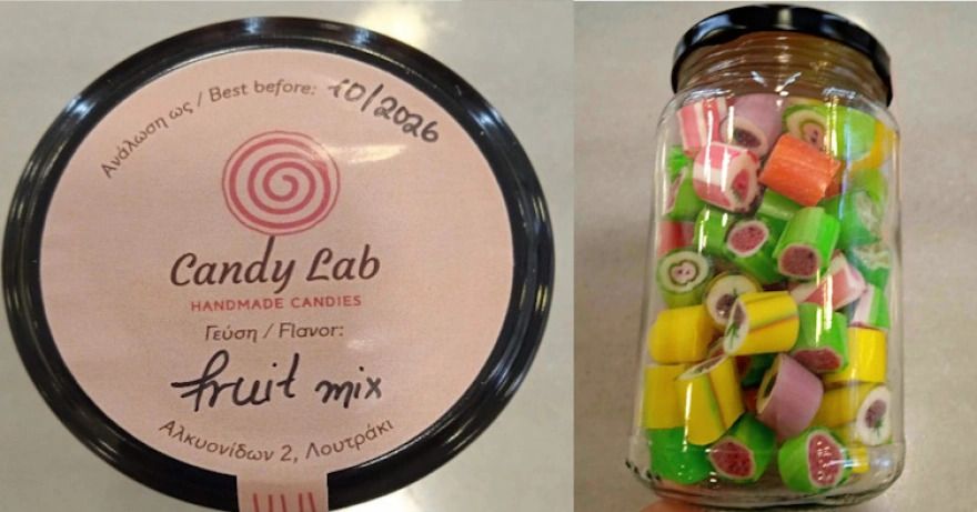 Καραμέλες «fruit mix», με ημερομηνία ανάλωσης έως τον Οκτώβριο του 2026, συσκευασίας καθαρού βάρους περίπου 230 γραμμαρίων, οι οποίες παράγονται και συσκευάζονται στην Ελλάδα από την εταιρεία «Candy Lab», με έδρα το Λουτράκι Κορινθίας.