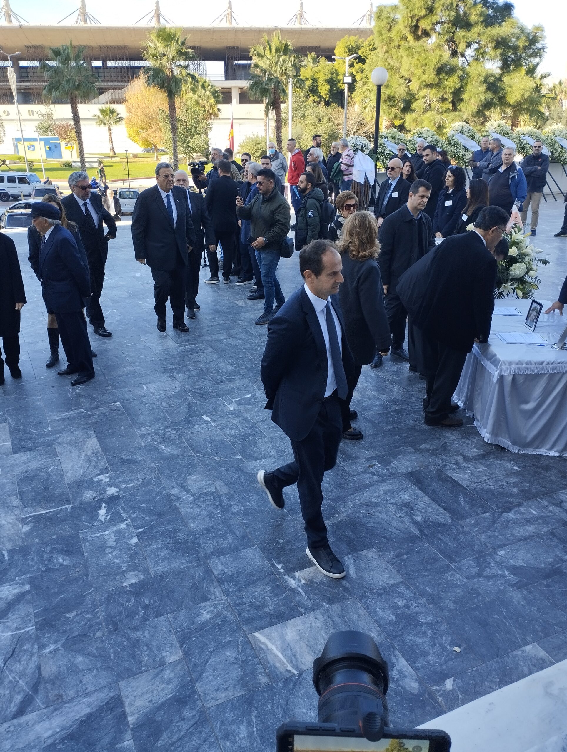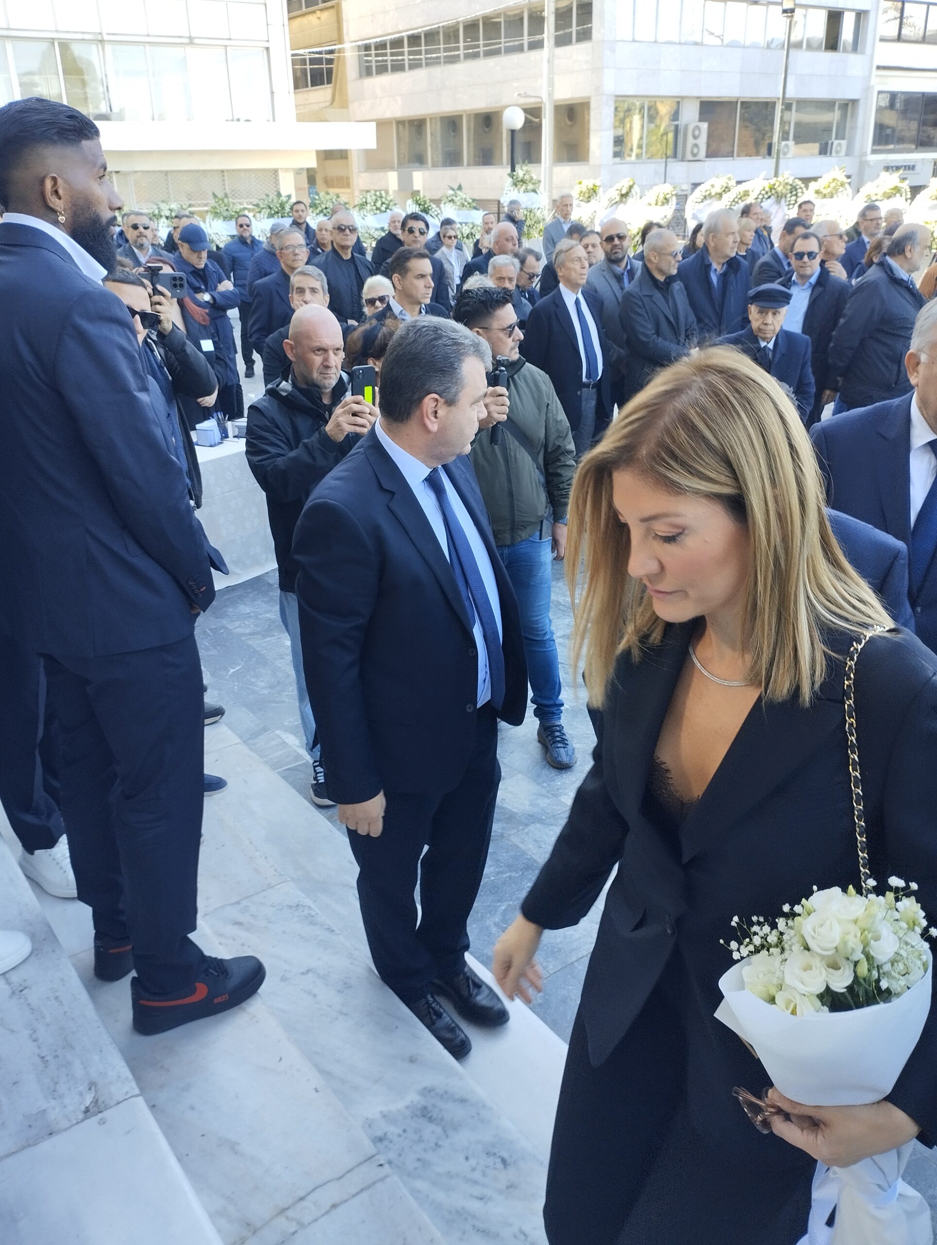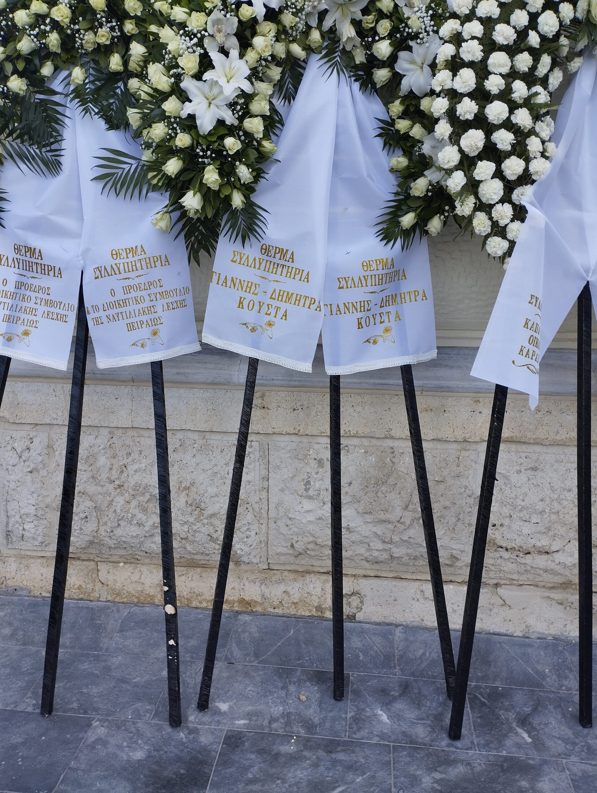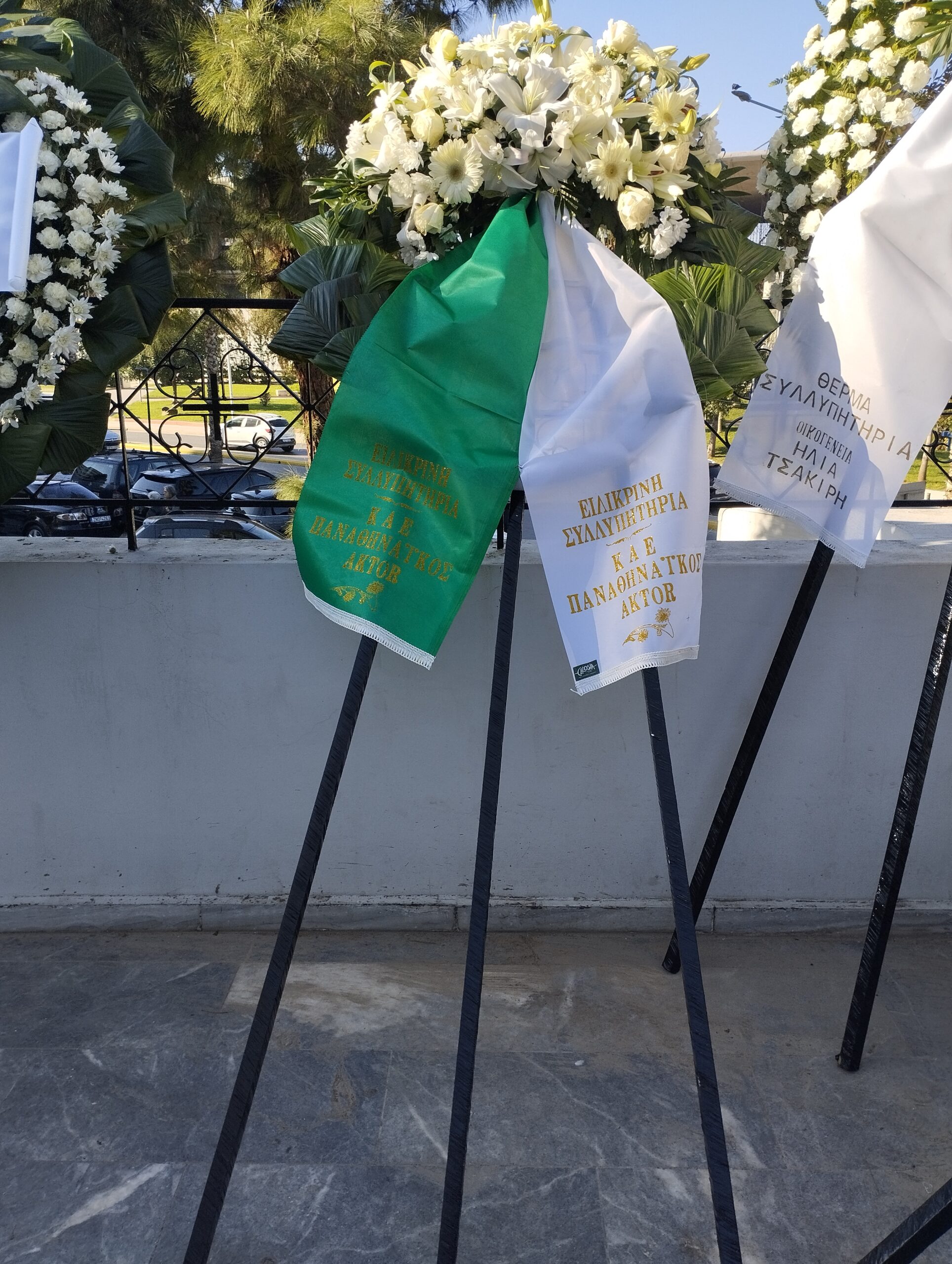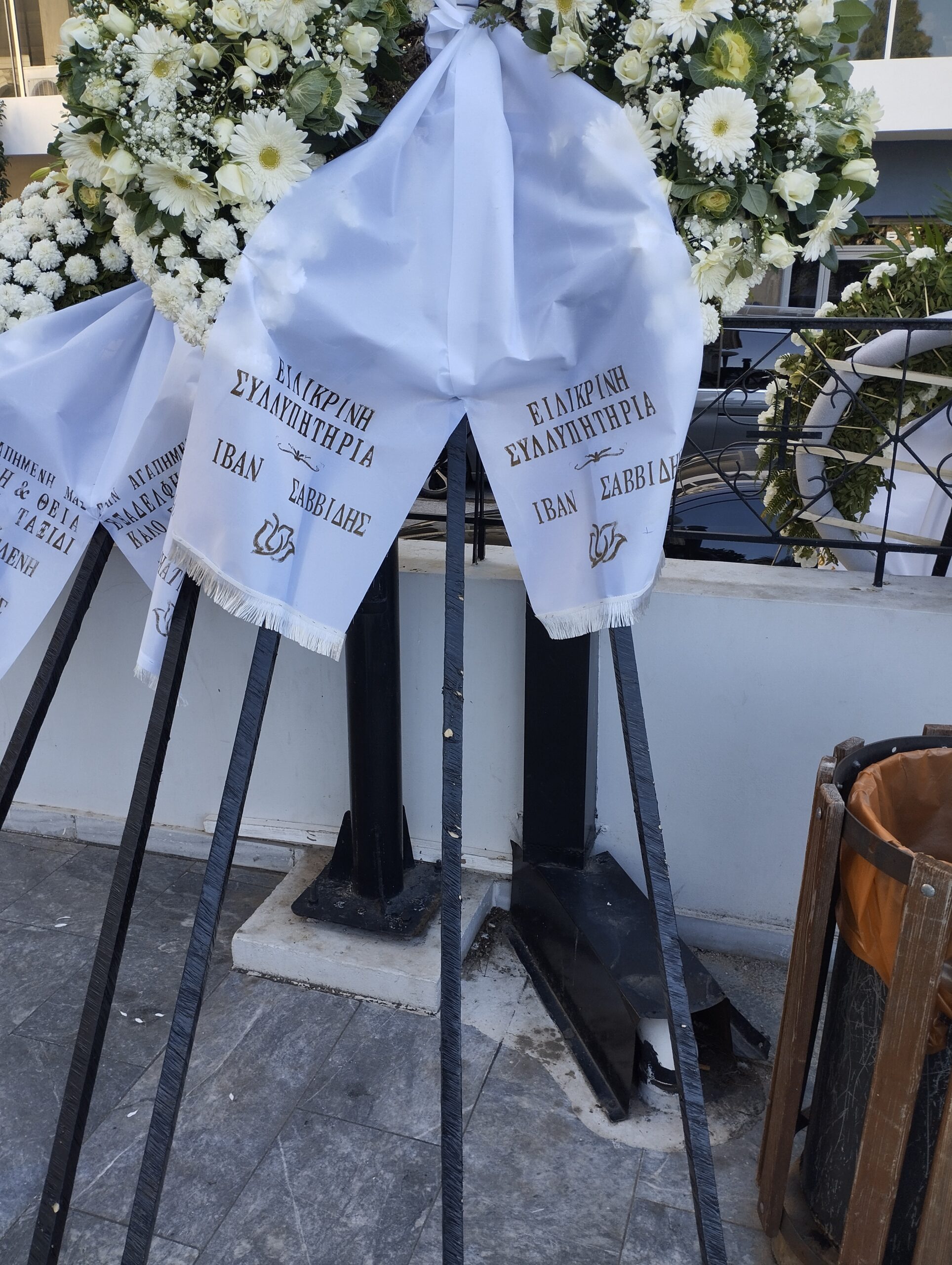 Ο Ιερός Ναός του Αγίου Νικολάου έχει πλημμυρίσει από στεφάνια από τον επιχειρηματικό και πολιτικό κόσμο της χώρας. Μεταξύ άλλων στεφάνια έχουν στείλει η ΠΑΕ ΠΑΟΚ, η ΠΑΕ ΑΕΚ, το Όραμα Ελπίδας, ο Ευάγγελος Μυτιληναίος, ο Βασίλης Κικίλιας, η Μάνια Λούβαρη, ο Γιώργος Λούβαρης, η Μαρία Μπεκατώρου, ο Θάνος Πλεύρης, η Capital ship man, η Alter ego media, ο Γιάννης και η Δέσποινα Βρέντζου, οι παίκτες του Ολυμπιακού, η Nottingham forest FC, ο Thrylos 24, ο Πρόεδρος της ΕΠΟ, Μάκης Γκαγκάτσης, ο Νίκος Αναστασιαδης τέως Πρόεδρος της Κυπριακής Δημοκρατίας, Νίκος Χριστοδουλίδης.