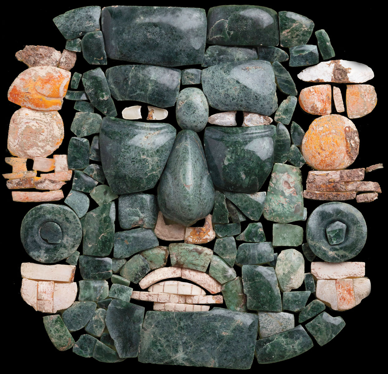 15. Μάσκα από νεφρίτη και κοχύλια από στην τοποθεσία των Μάγια στο Καρακόλ